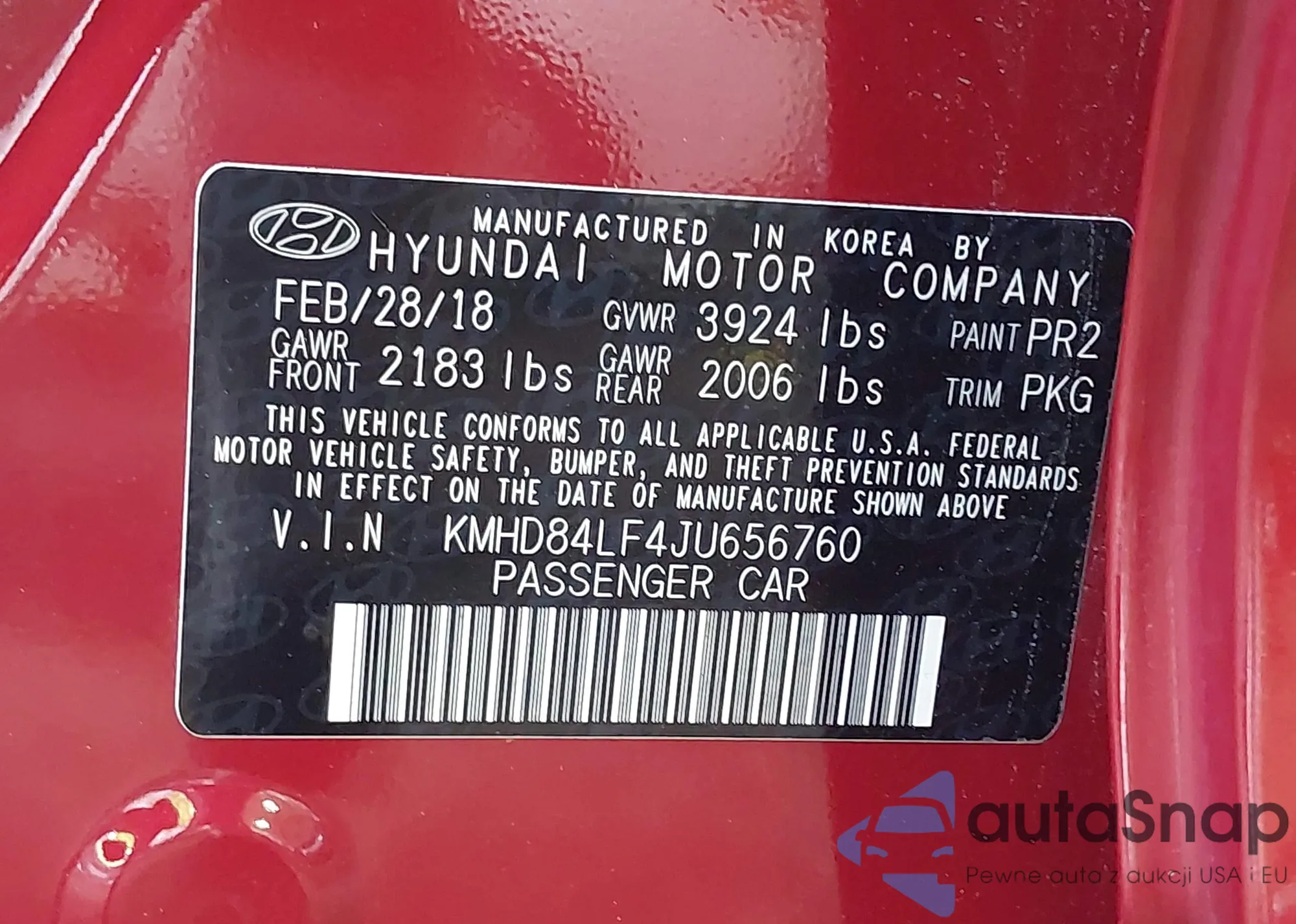 • VIN KMHD84LF4JU656760