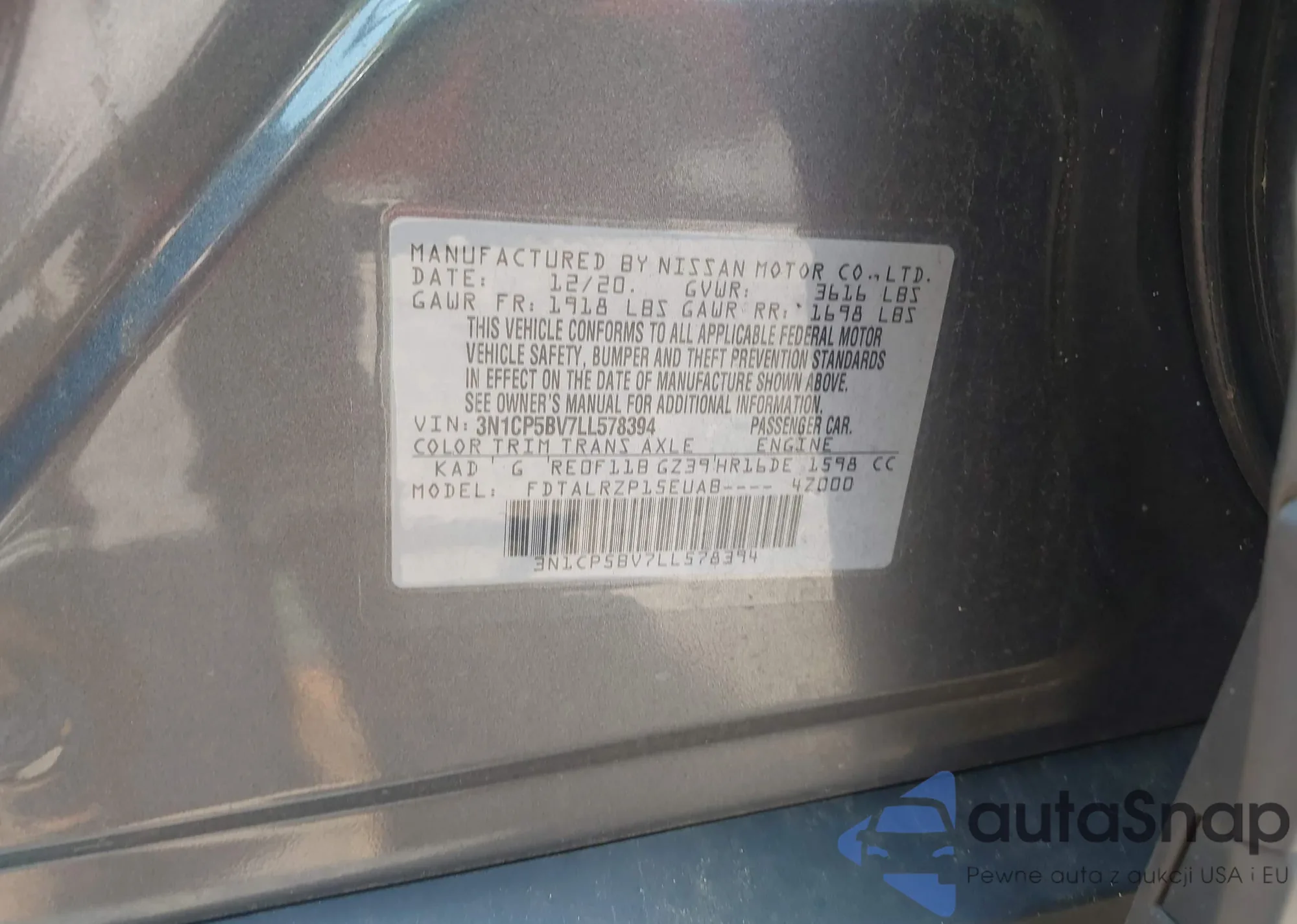 LOT: 42451330 VIN: 3N1CP5BV7LL578394