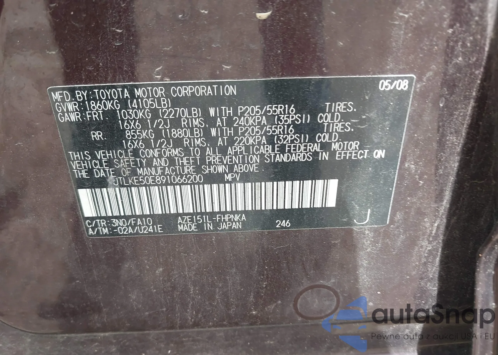 • VIN JTLKE50E891066200