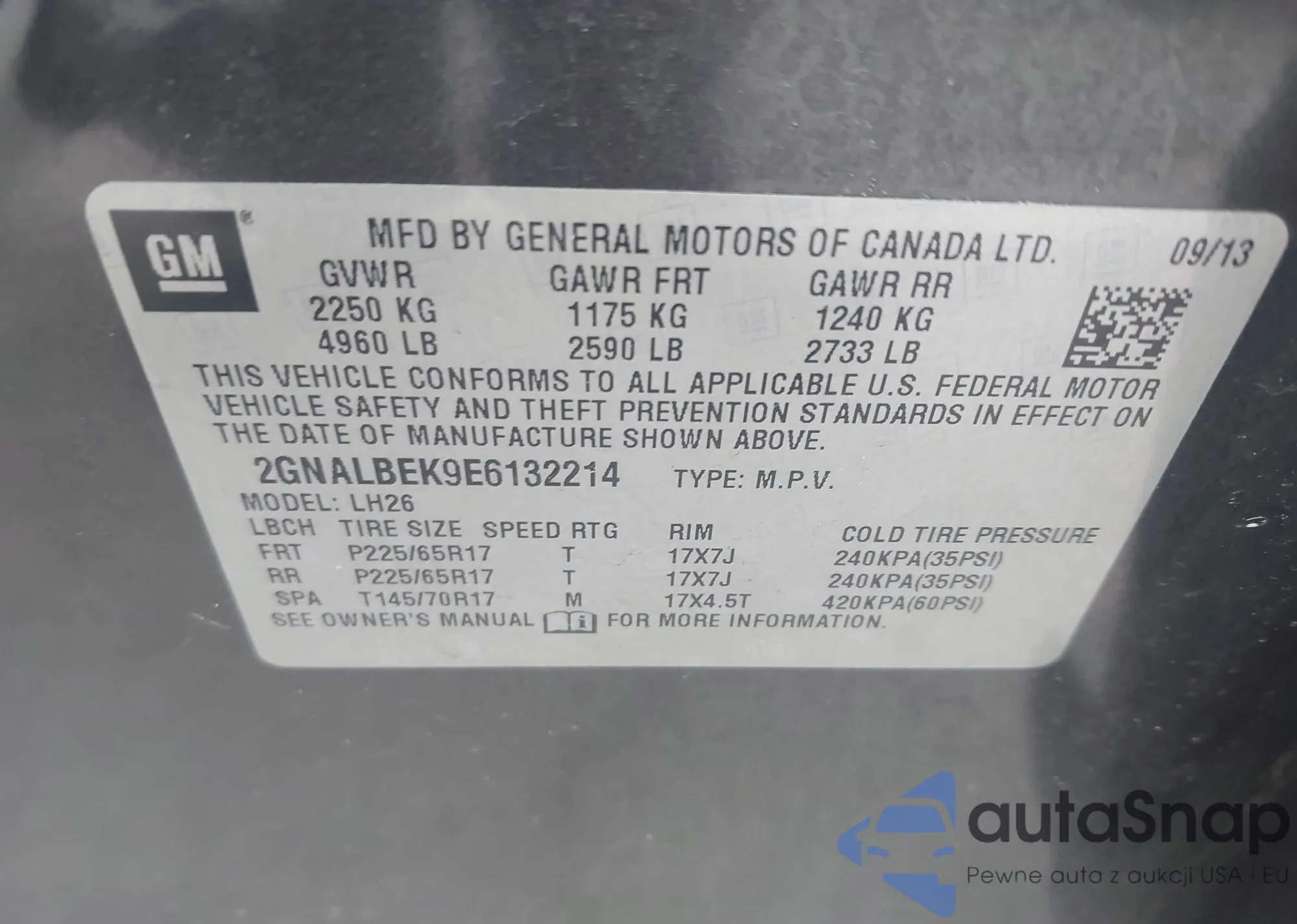 • VIN 2GNALBEK9E6132214