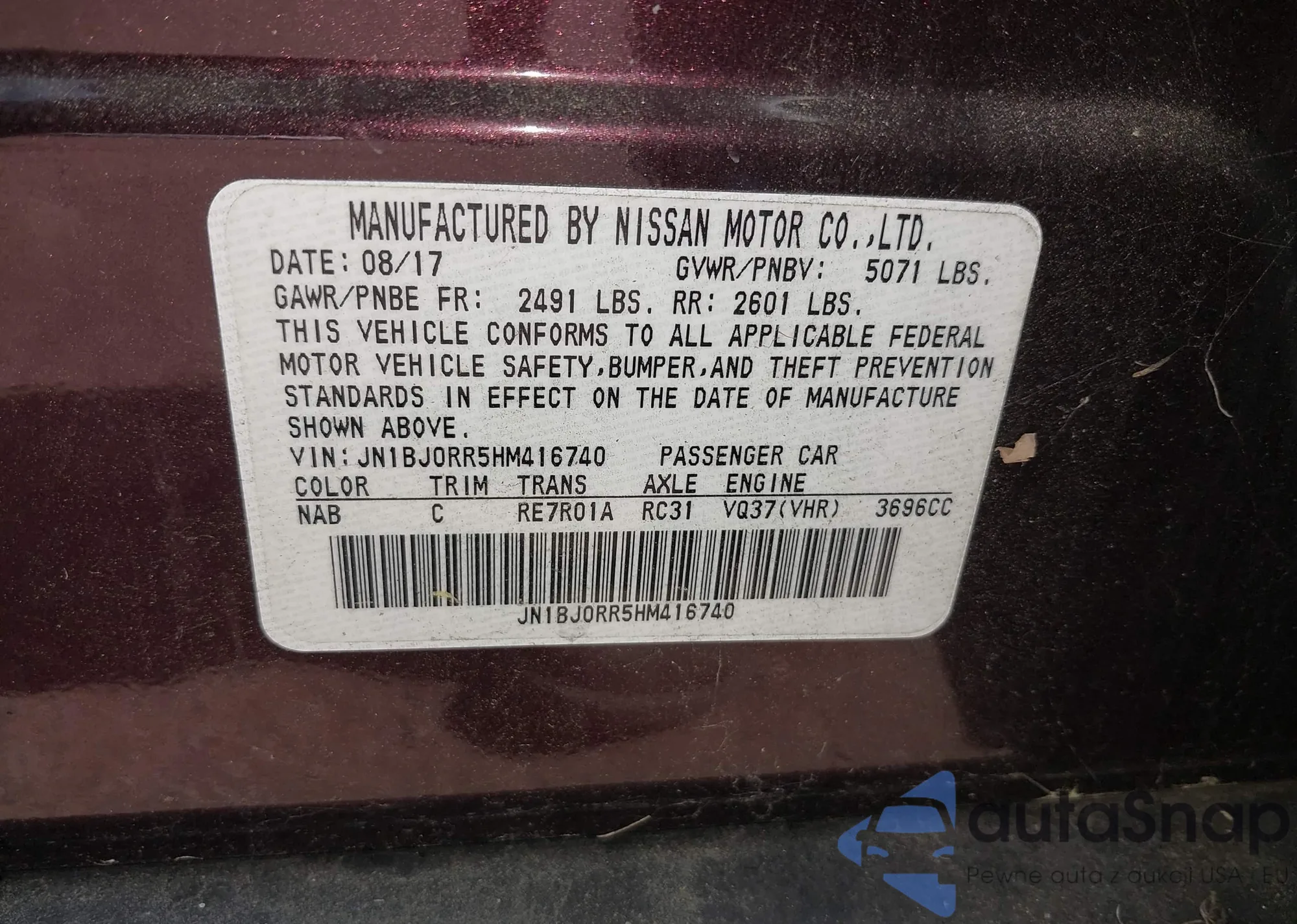 LOT: 42634958 VIN: JN1BJ0RR5HM416740