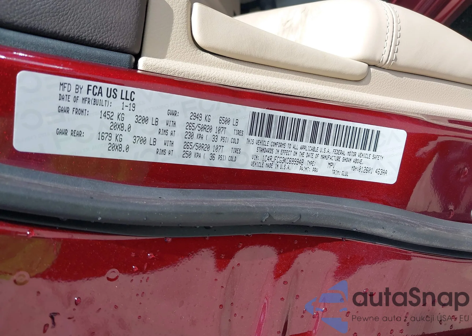 LOT: 42681467 VIN: 1C4RJFCG3KC699948