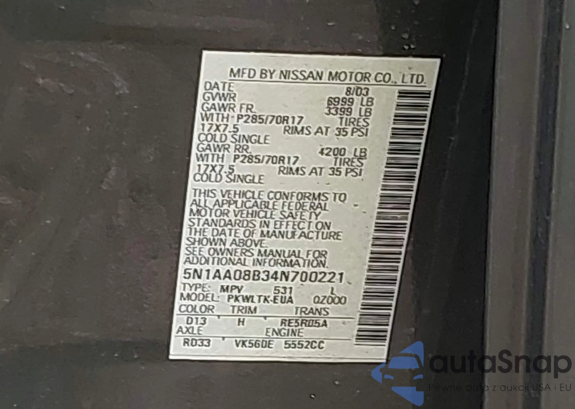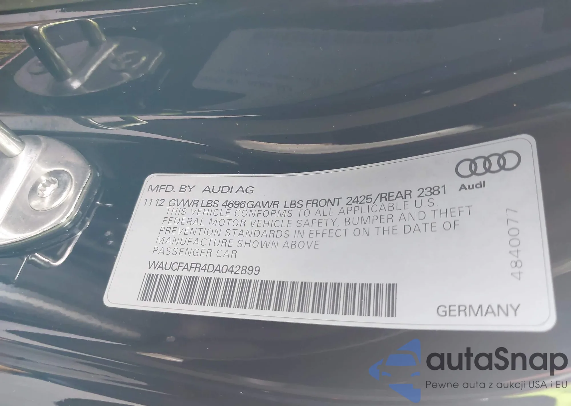 • VIN WAUCFAFR4DA042899