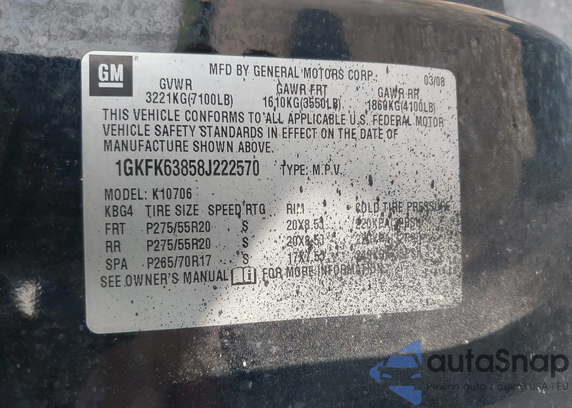 LOT: 42734226 VIN: 1GKFK63858J222570