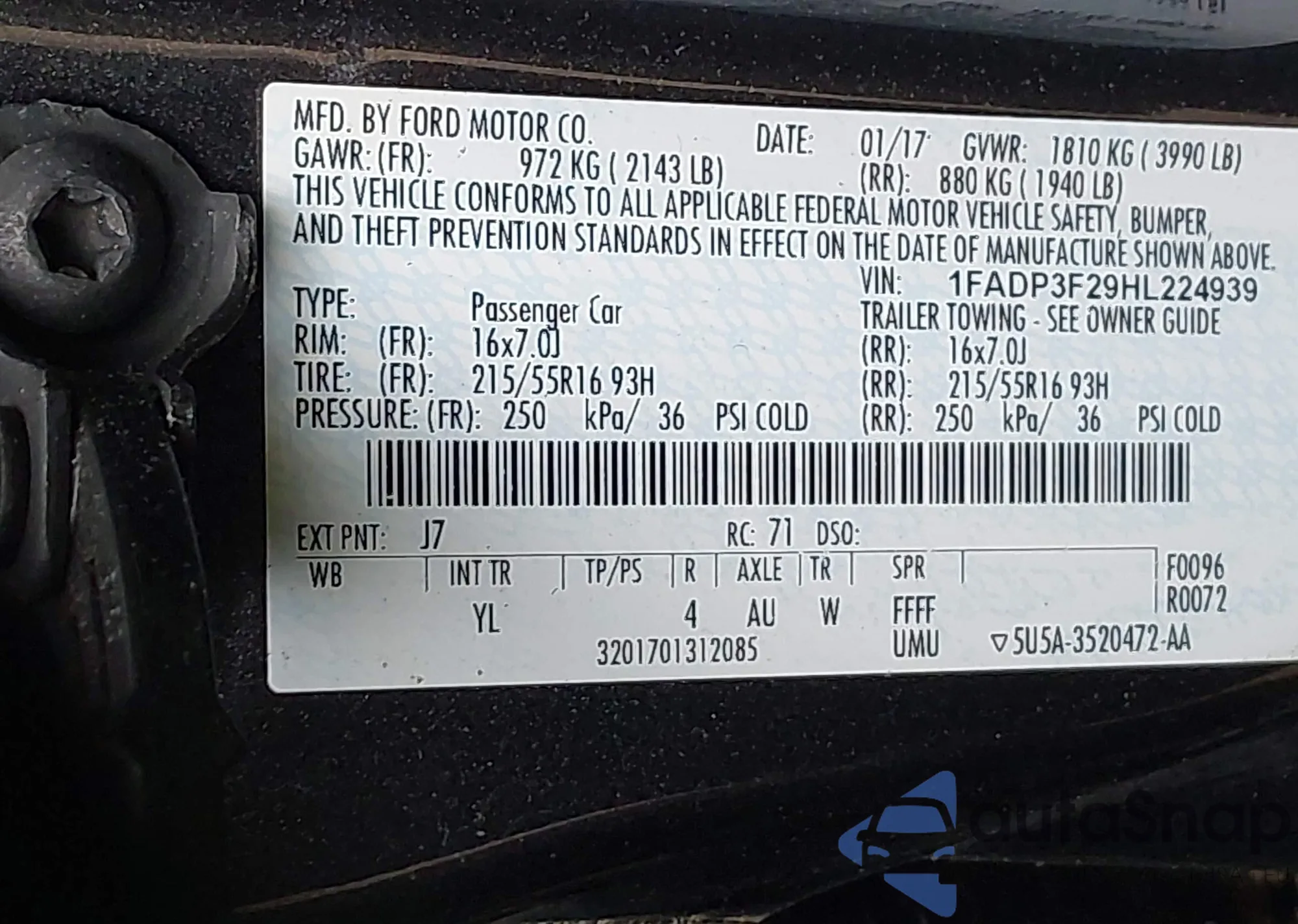 LOT: 42184634 VIN: 3FADP0L34AR183056