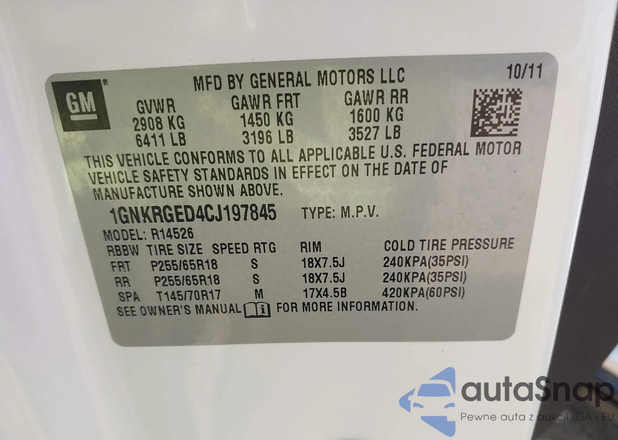 LOT: 42487210 VIN: 1GNKRGED4CJ197845