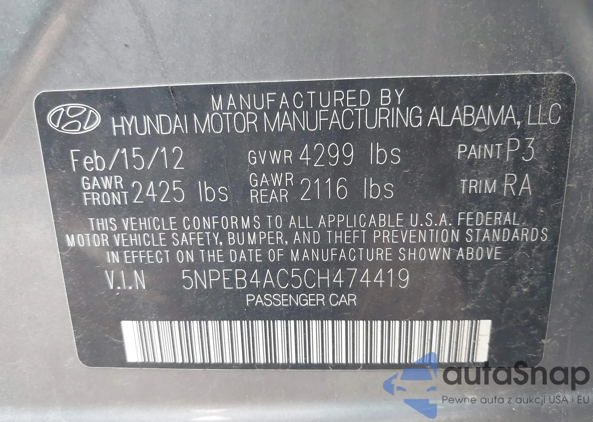 • VIN 5NPEB4AC7EH854350