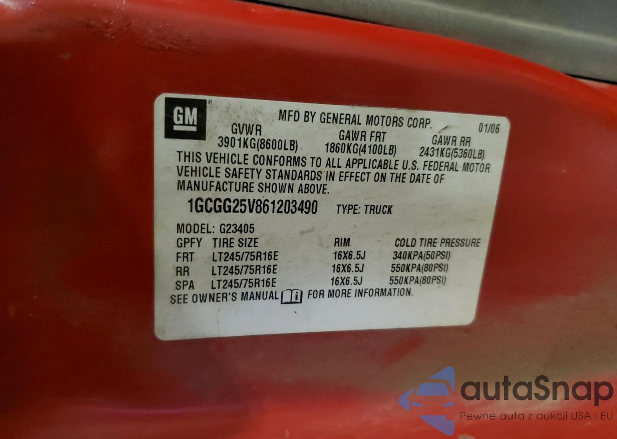 • VIN 1GCGG25V861203490