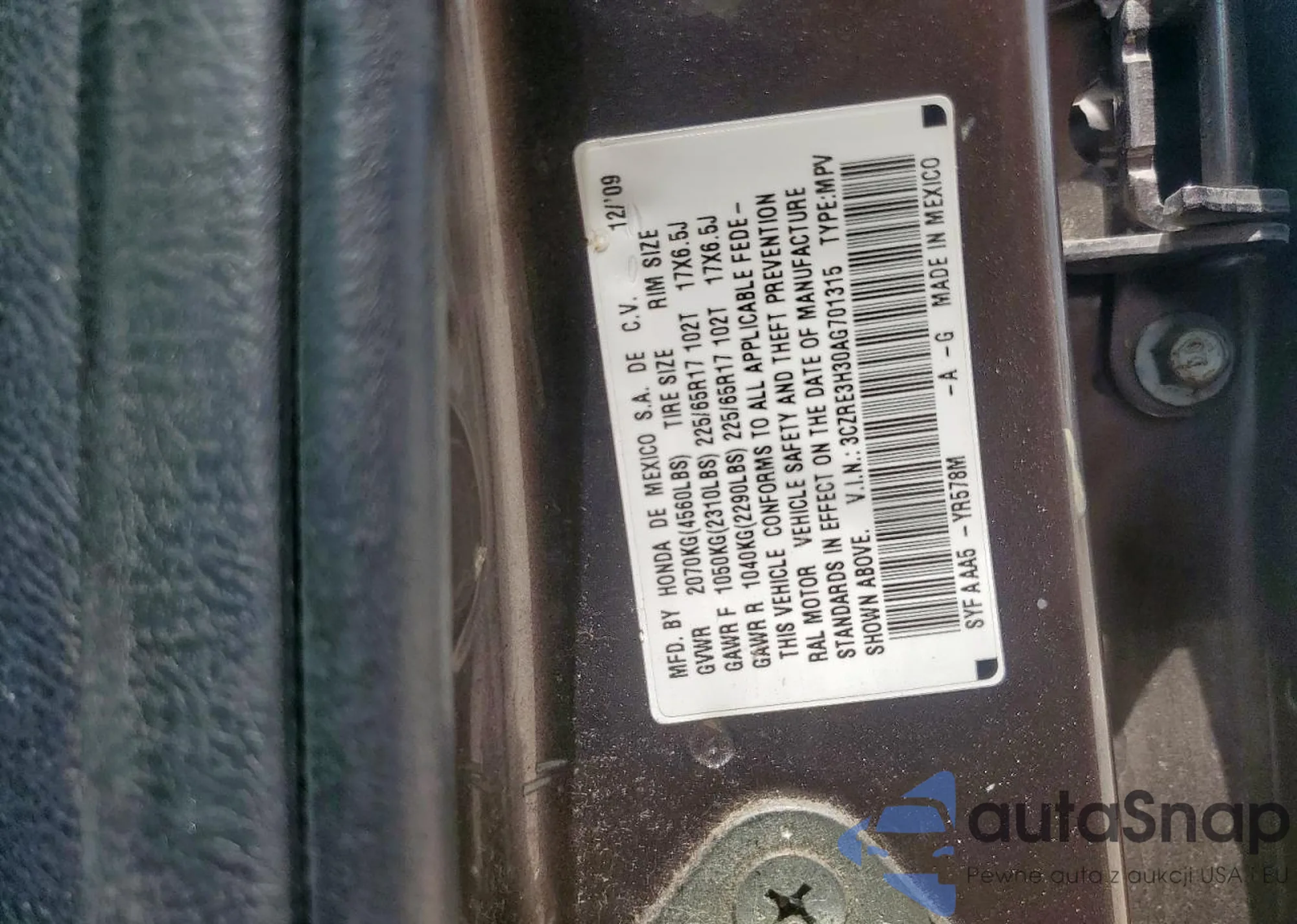 • VIN 5FNYF5H54JB030975