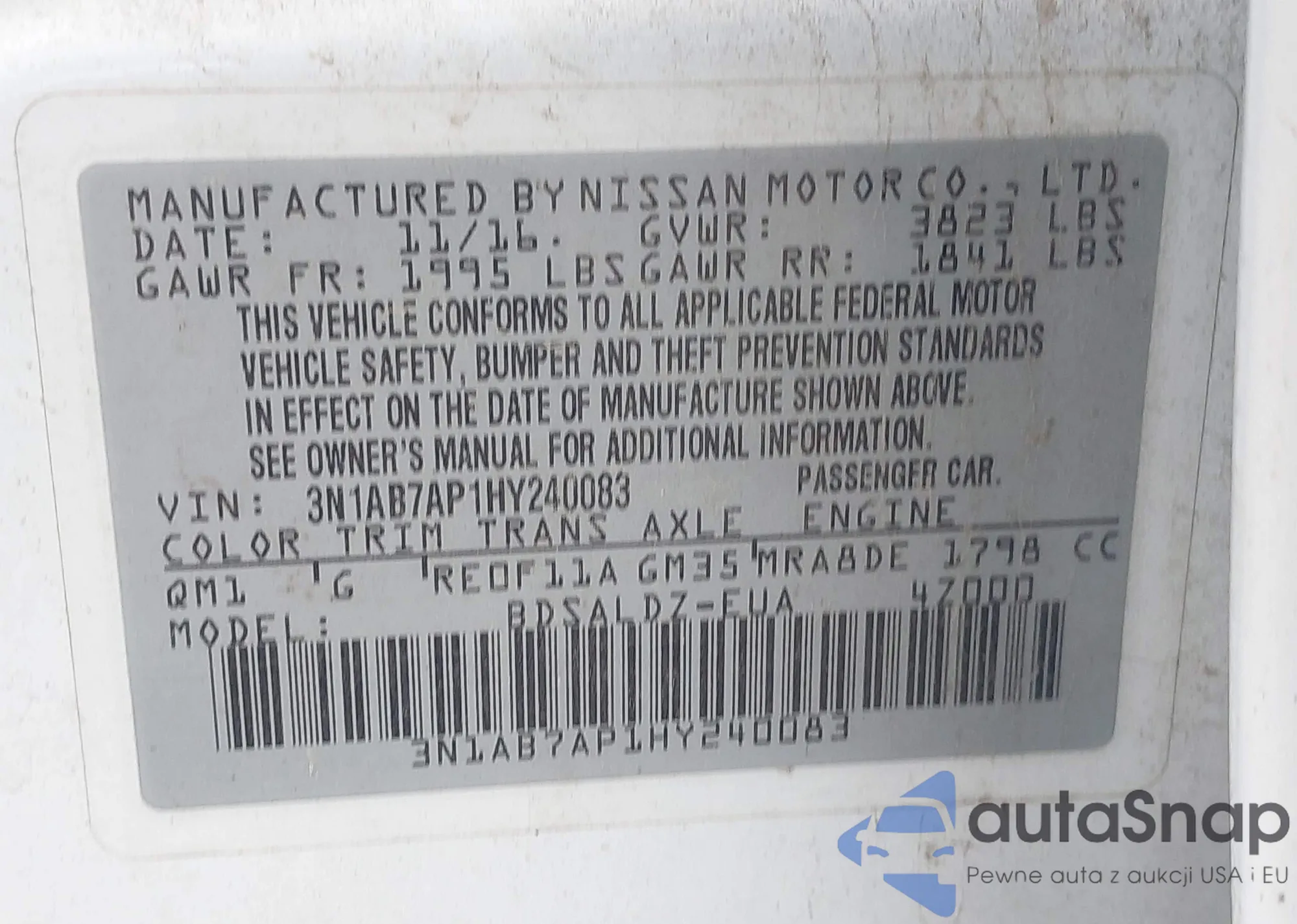 • VIN 3N1AB7AP1HY240083