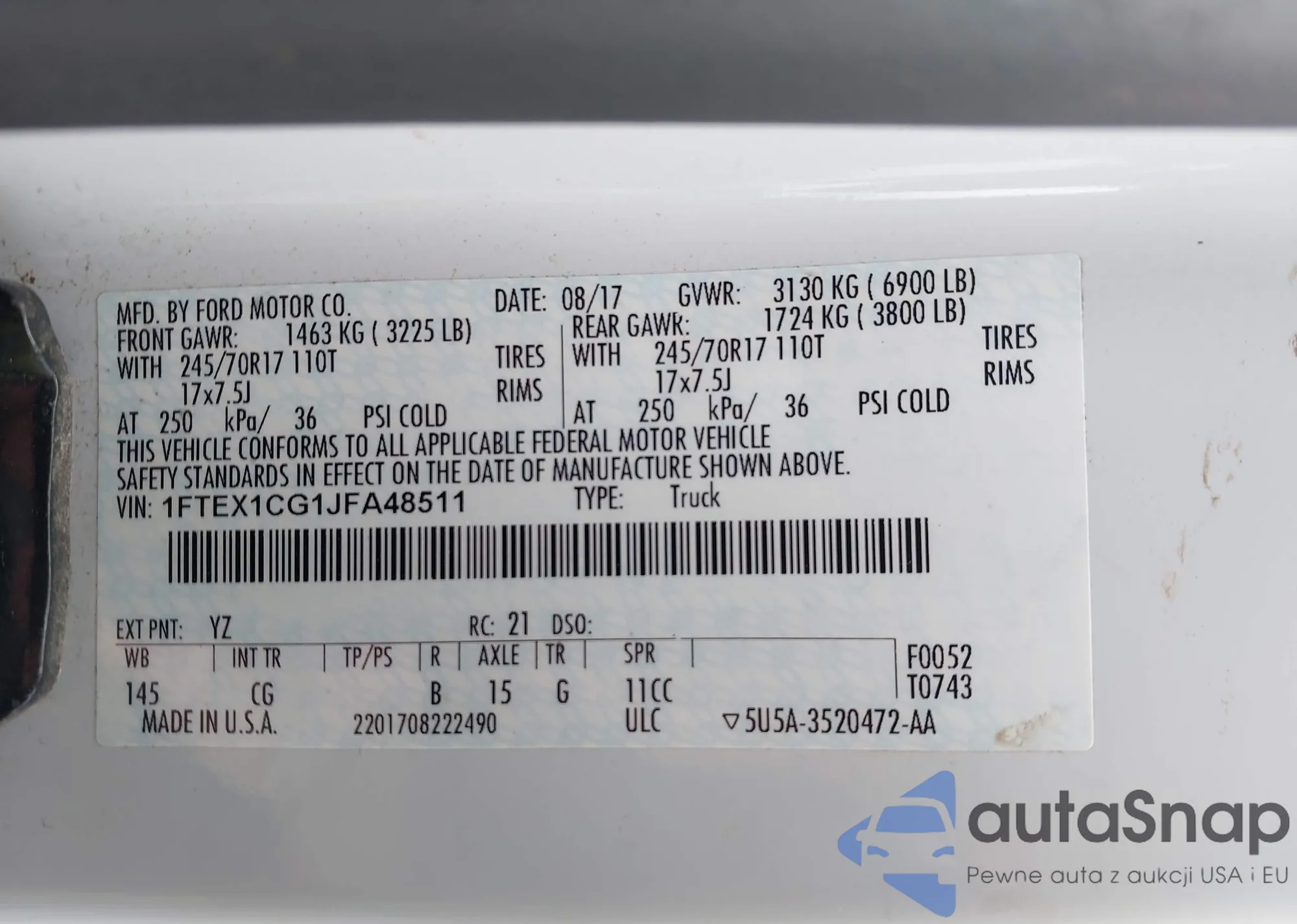 LOT: 42602112 VIN: 1FTEX1CG1JFA48511