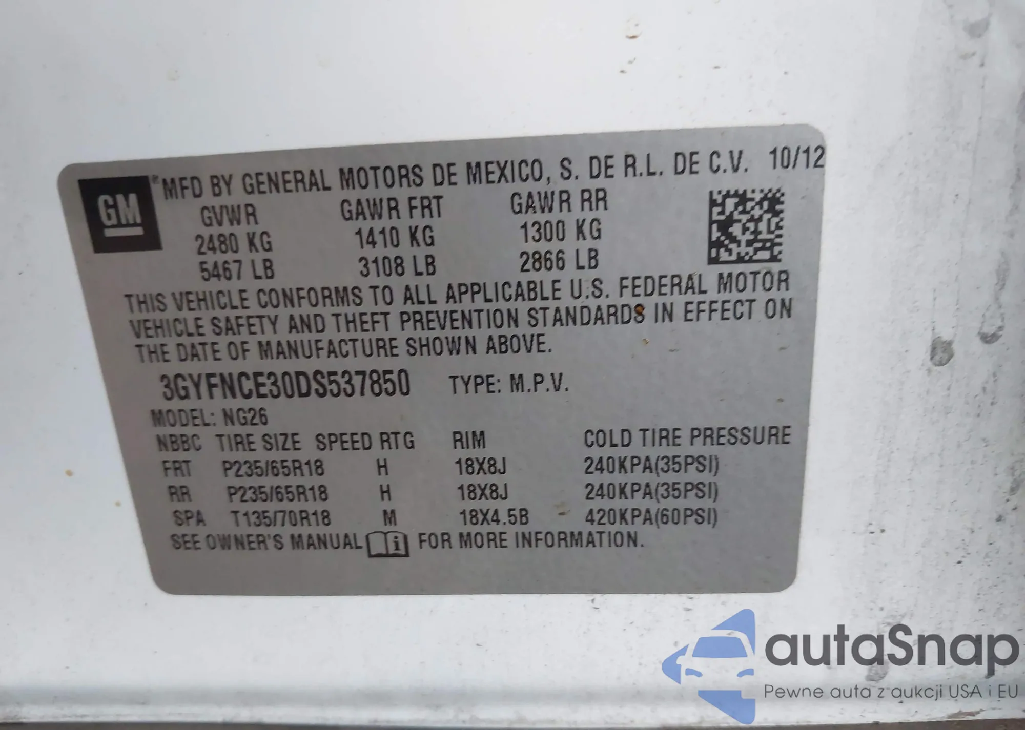 • VIN 3GYFNCE30DS537850