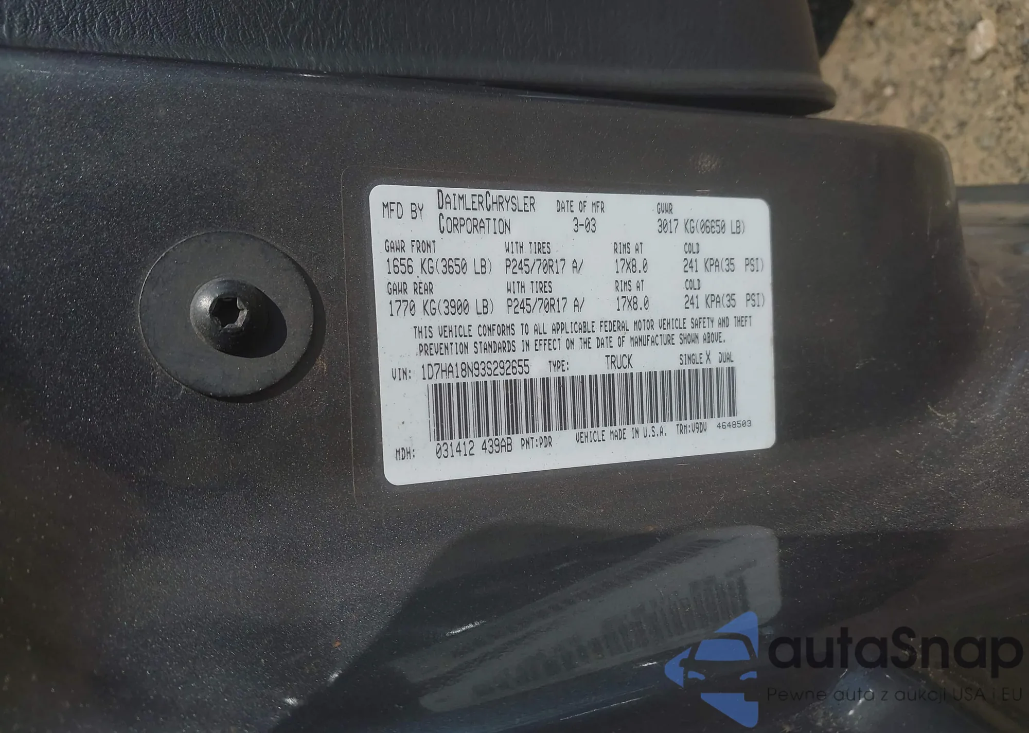 • VIN 1D7HA18N93S292655