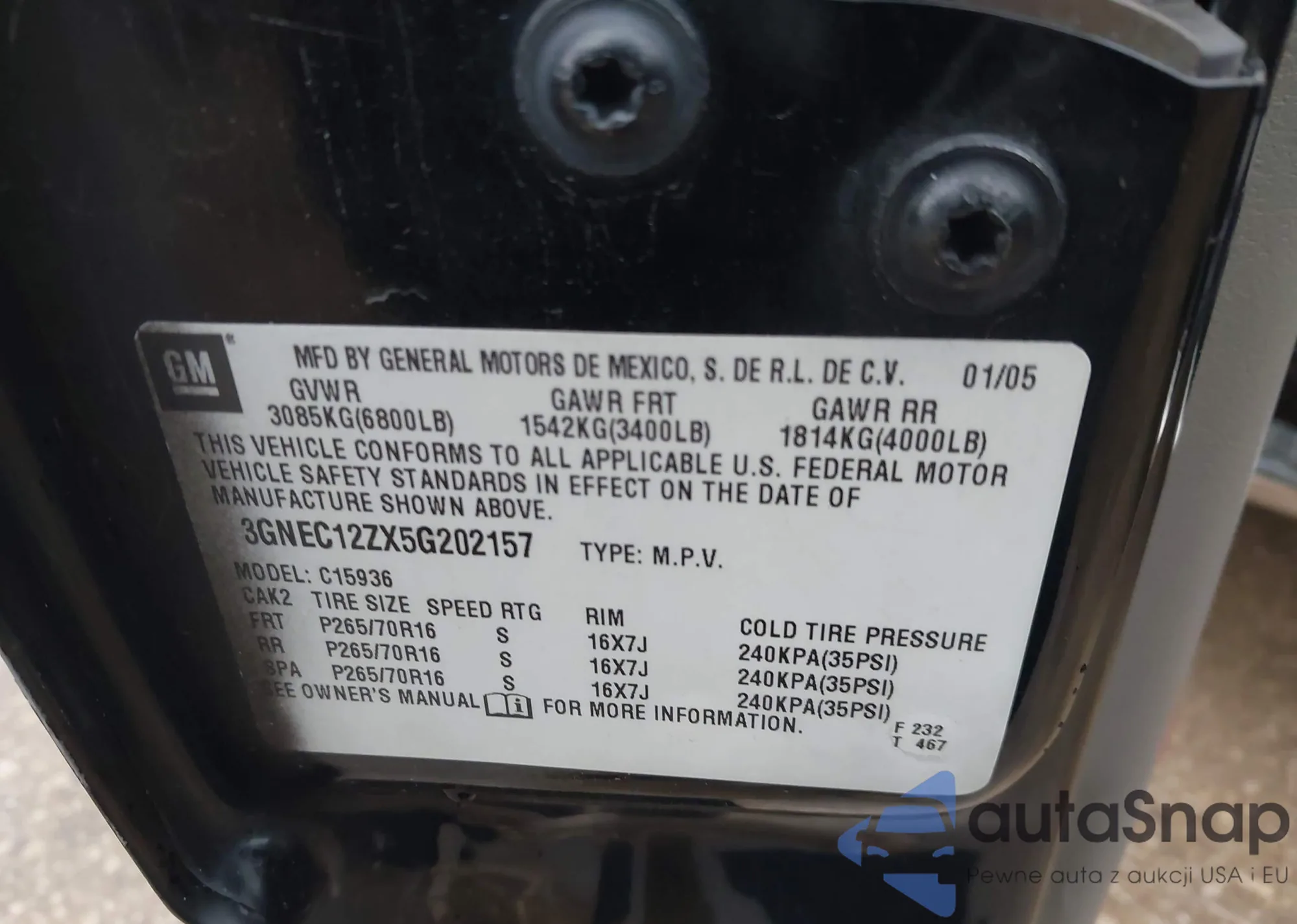 • VIN 3GNEC12ZX5G202157