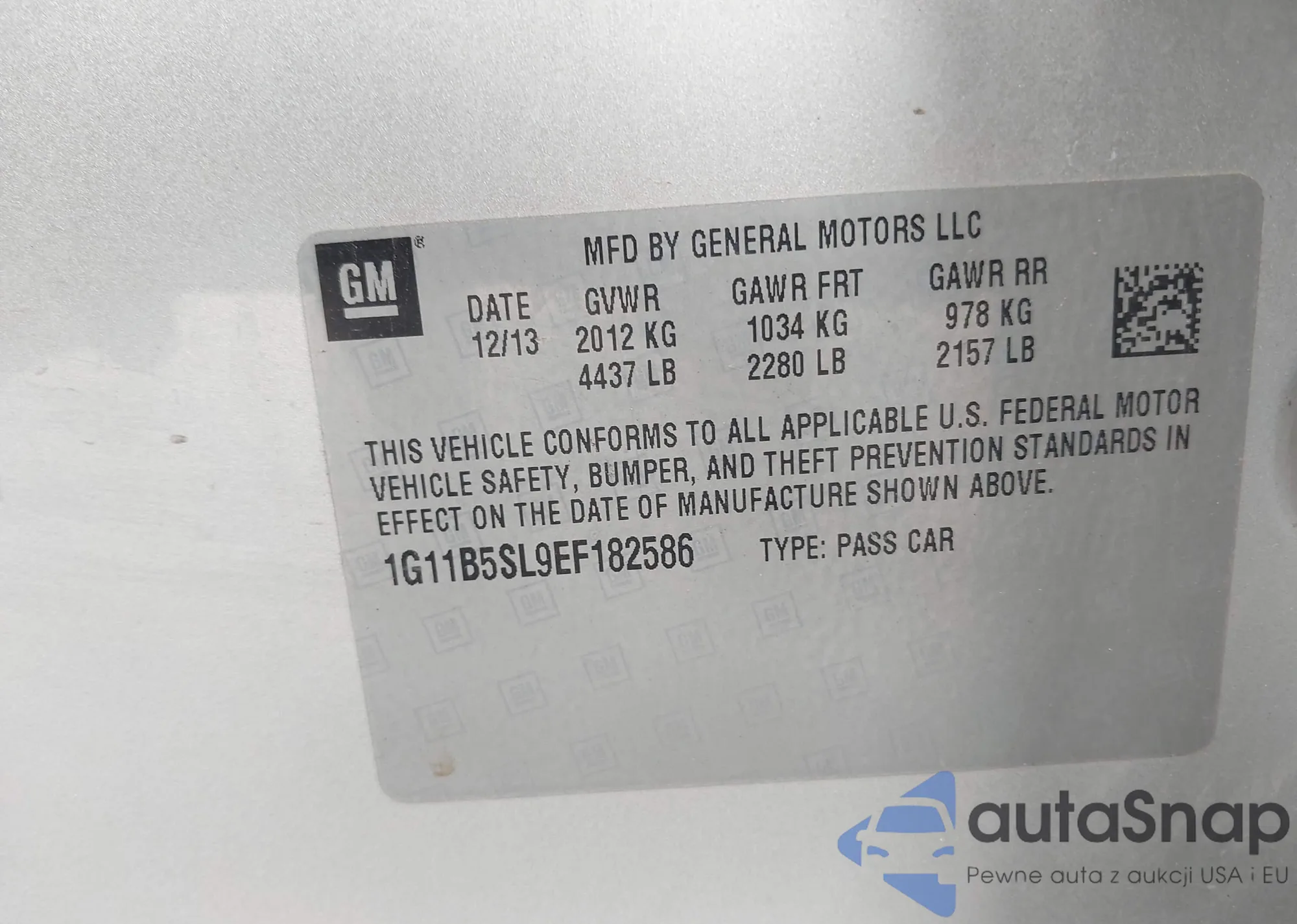 LOT: 42762952 VIN: 1G11B5SL9EF182586