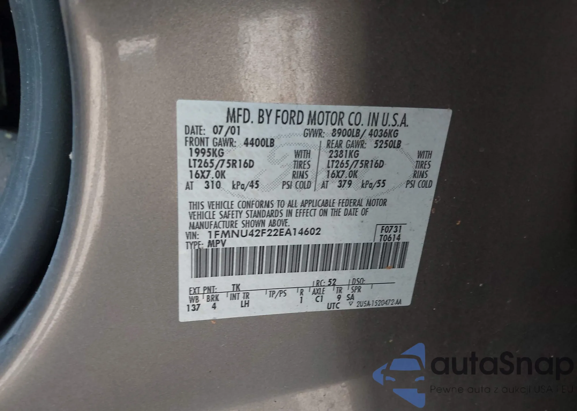 LOT: 42569043 VIN: 1FMNU42F22EA14602