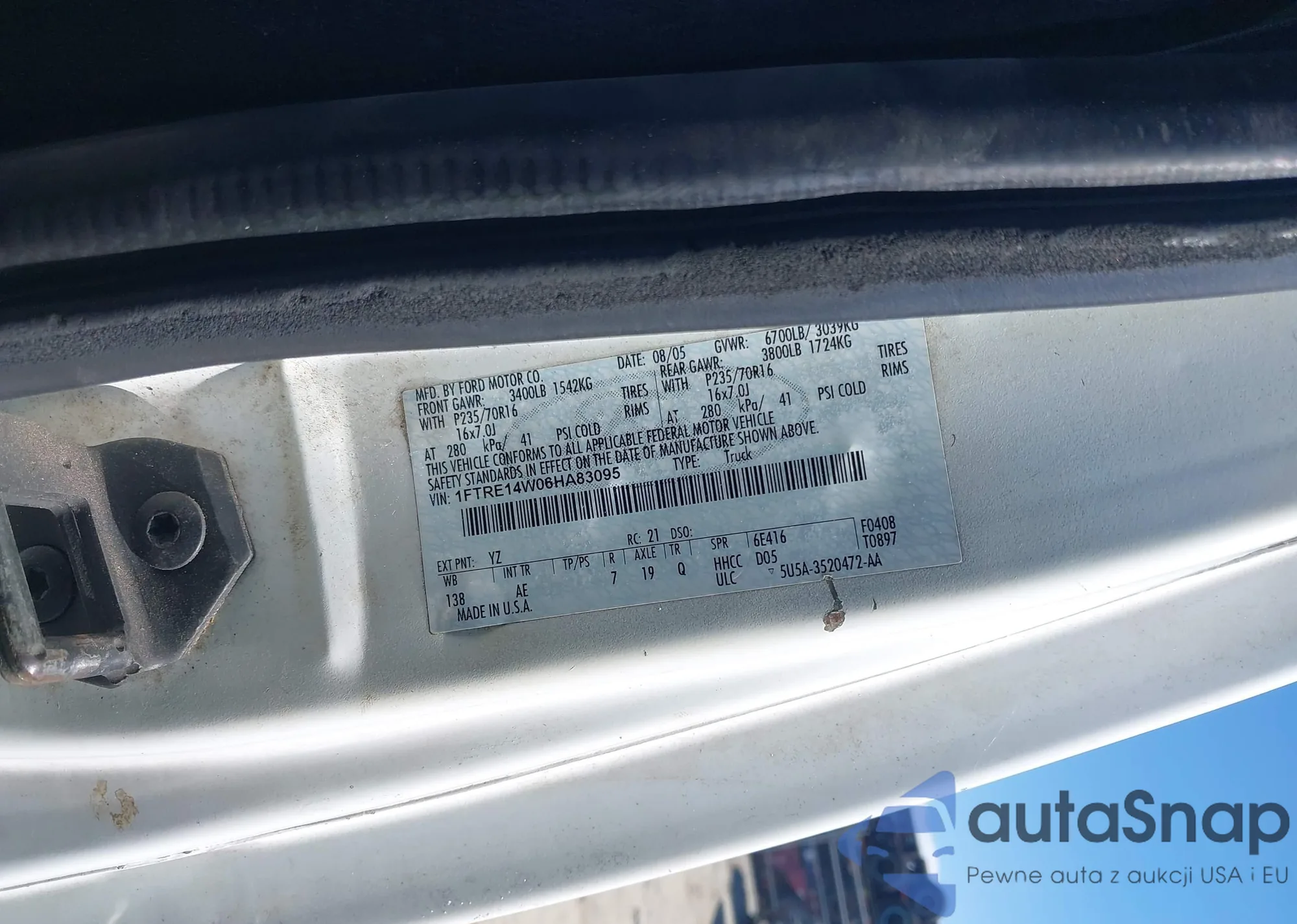 LOT: 42329493 VIN: 1FTRE14W06HA83095