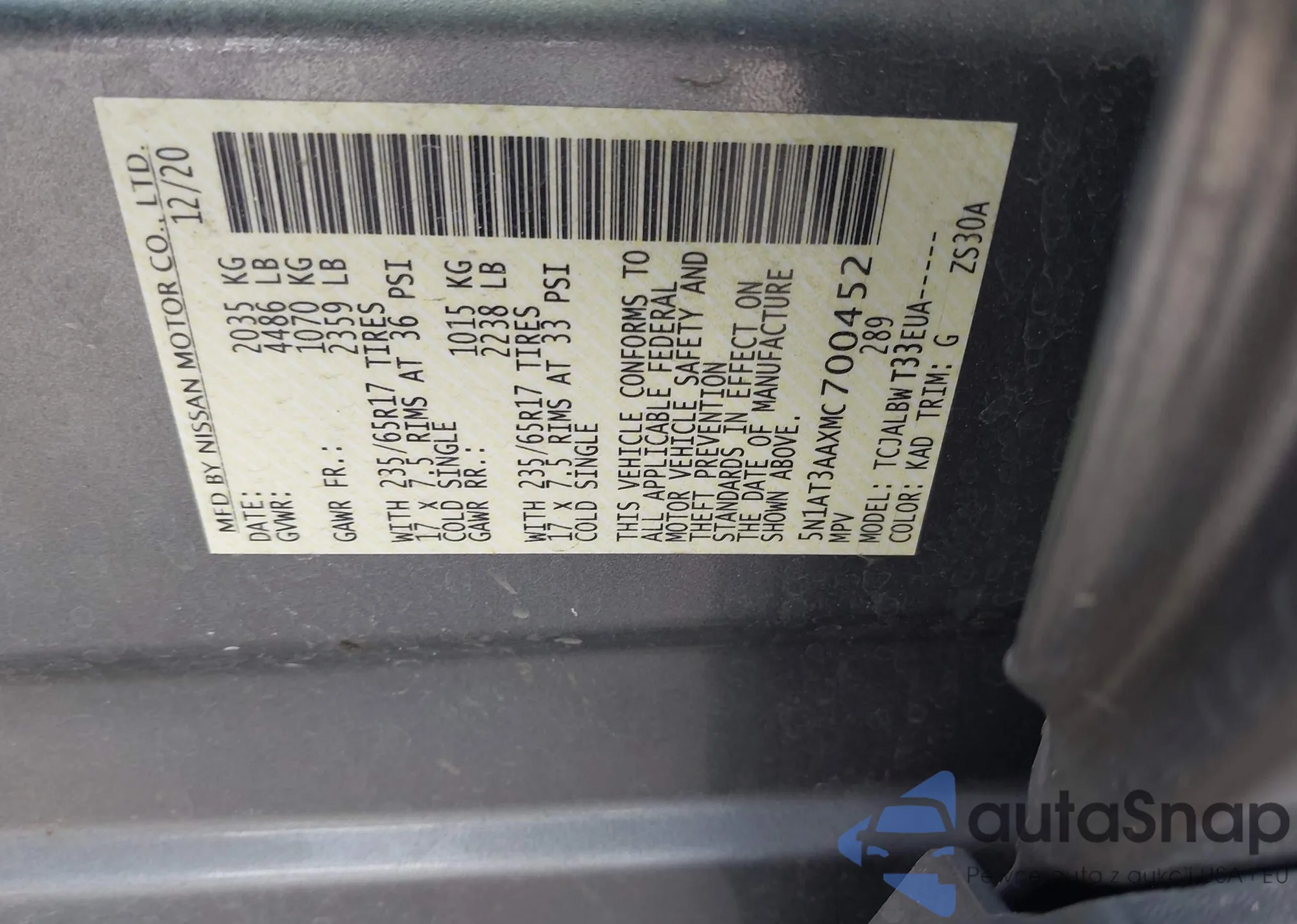 • VIN JN8AZ1MW5CW239483
