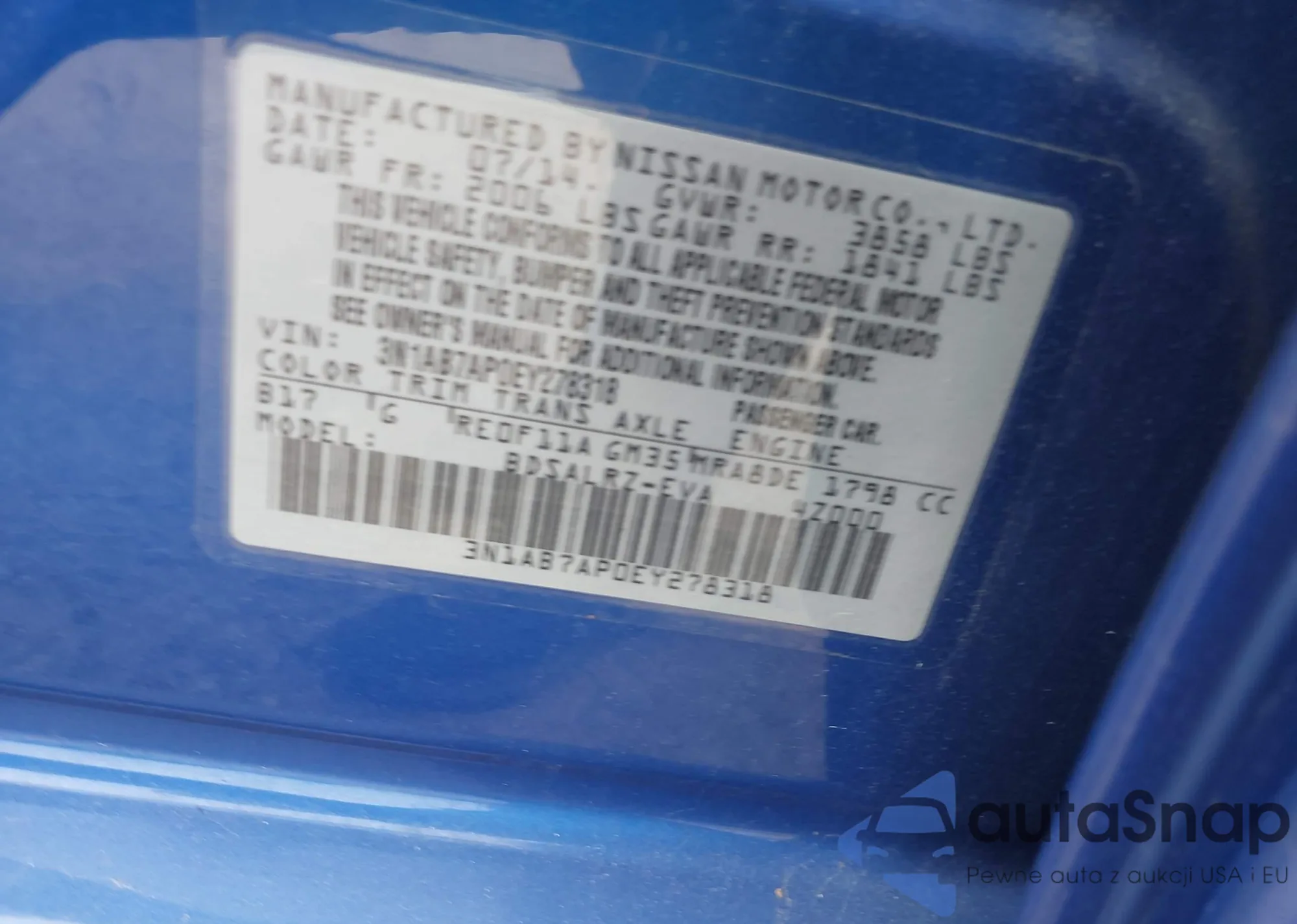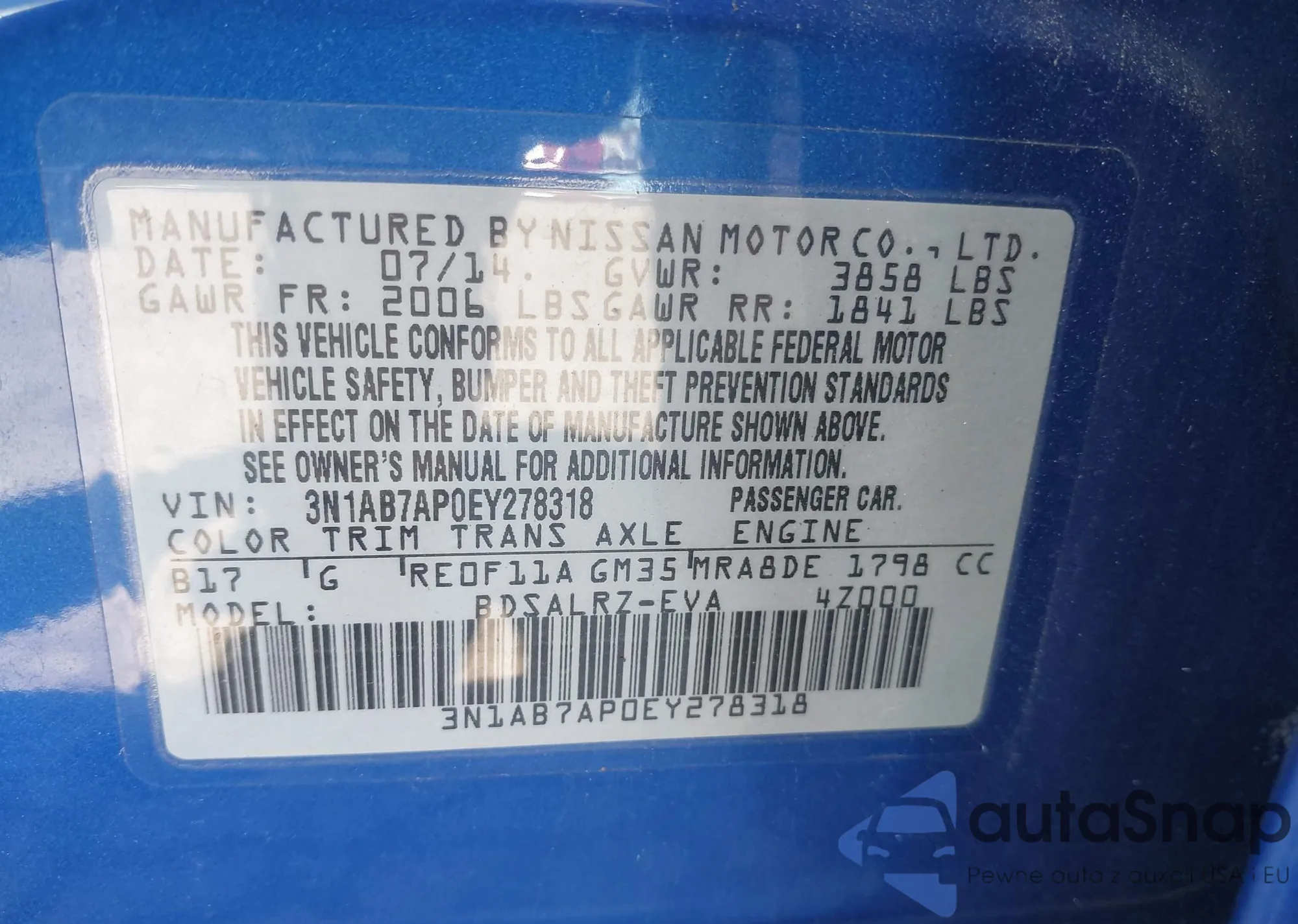LOT: 42404710 VIN: 3N1AB7AP0EY278318