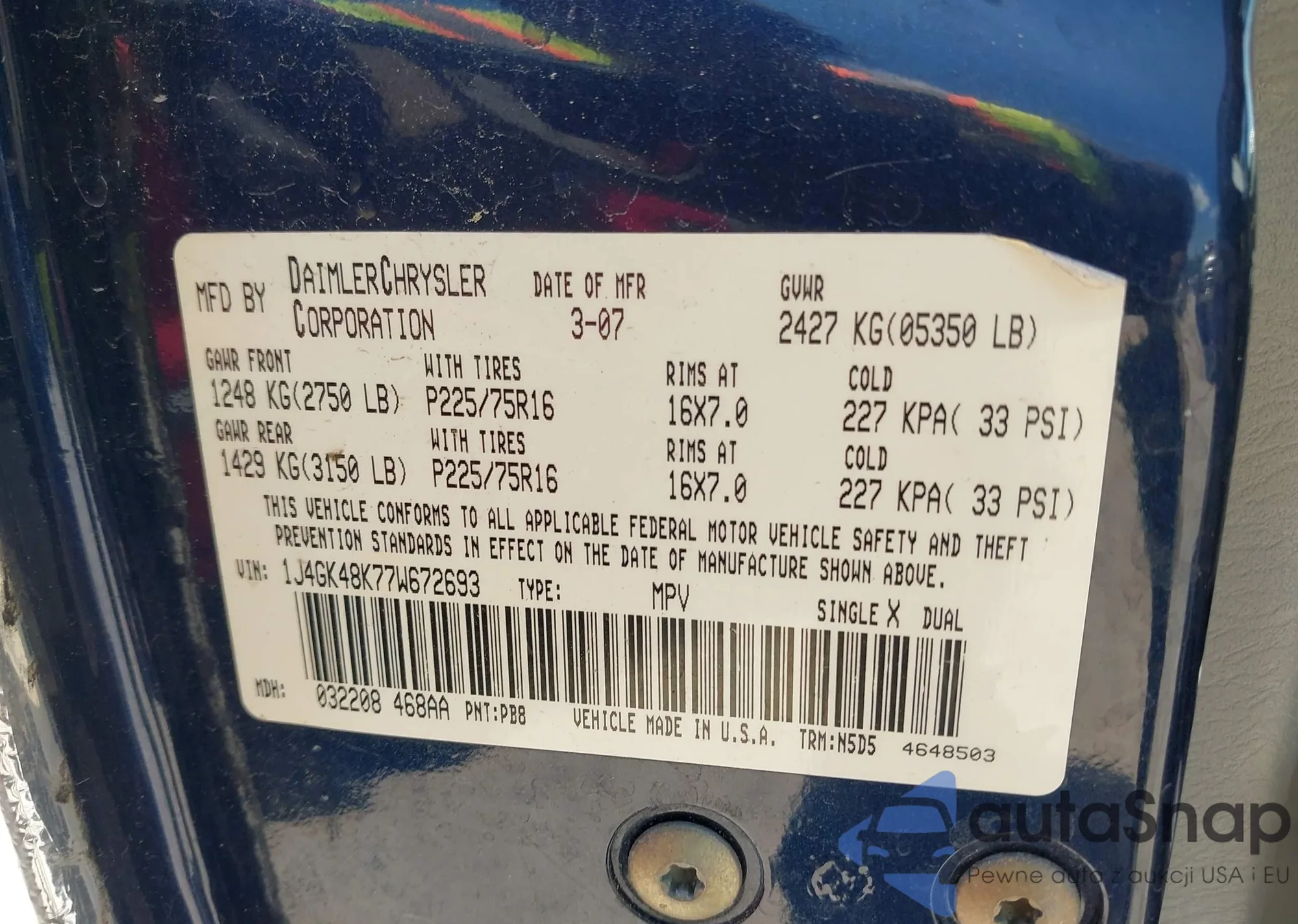 • VIN 1J4GK48K77W672693