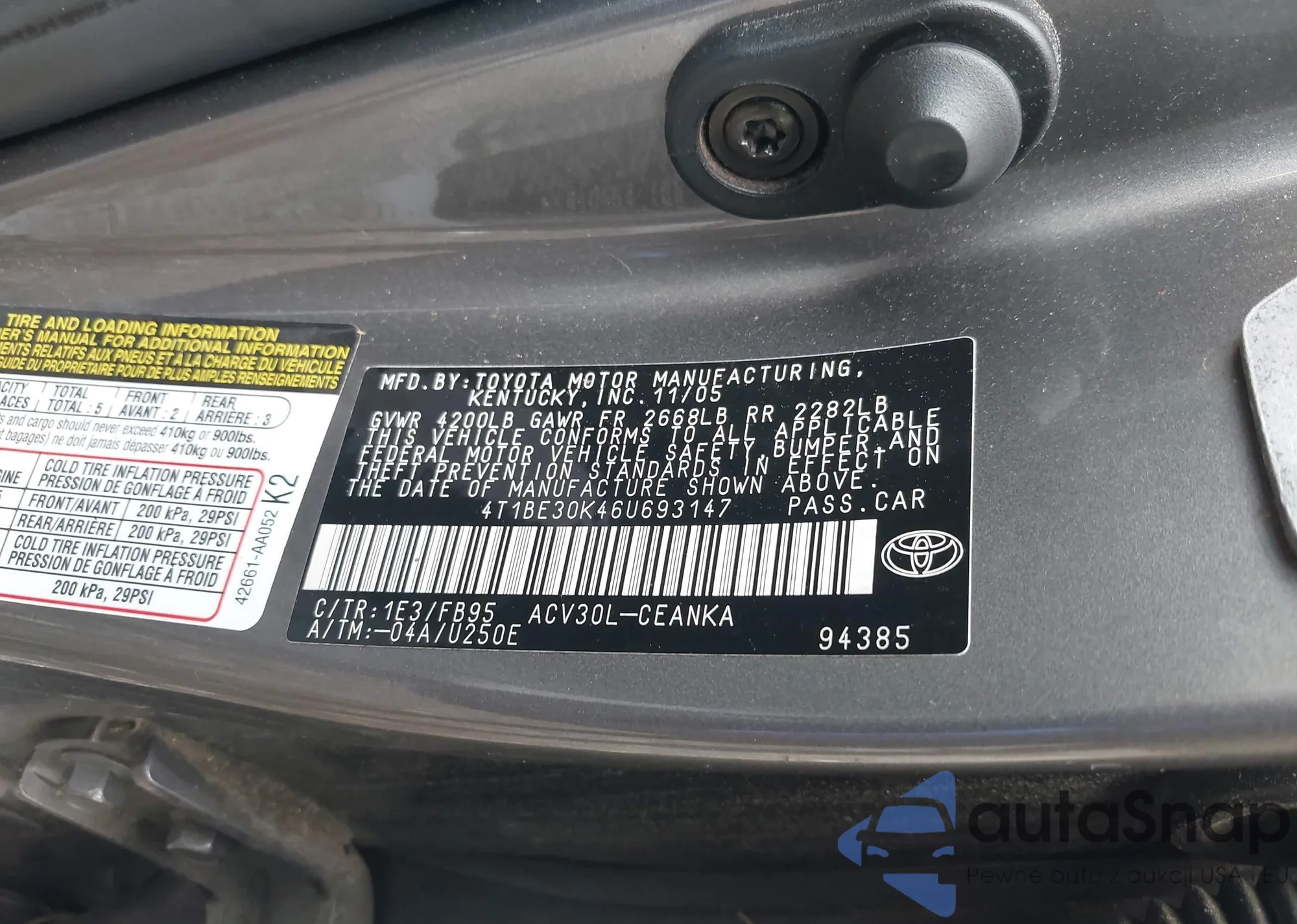 LOT: 42431406 VIN: JTKDE177060095611