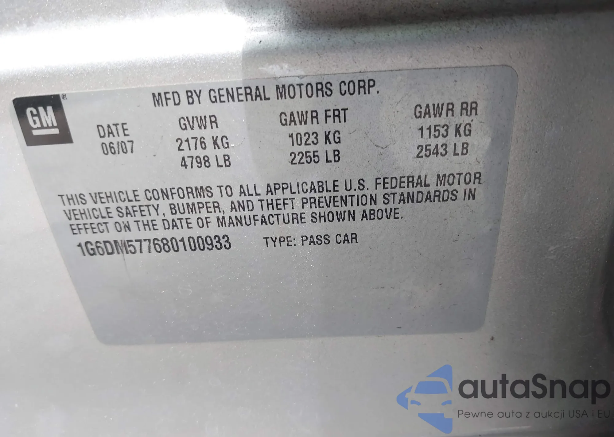 • VIN 1G6DM577680100933