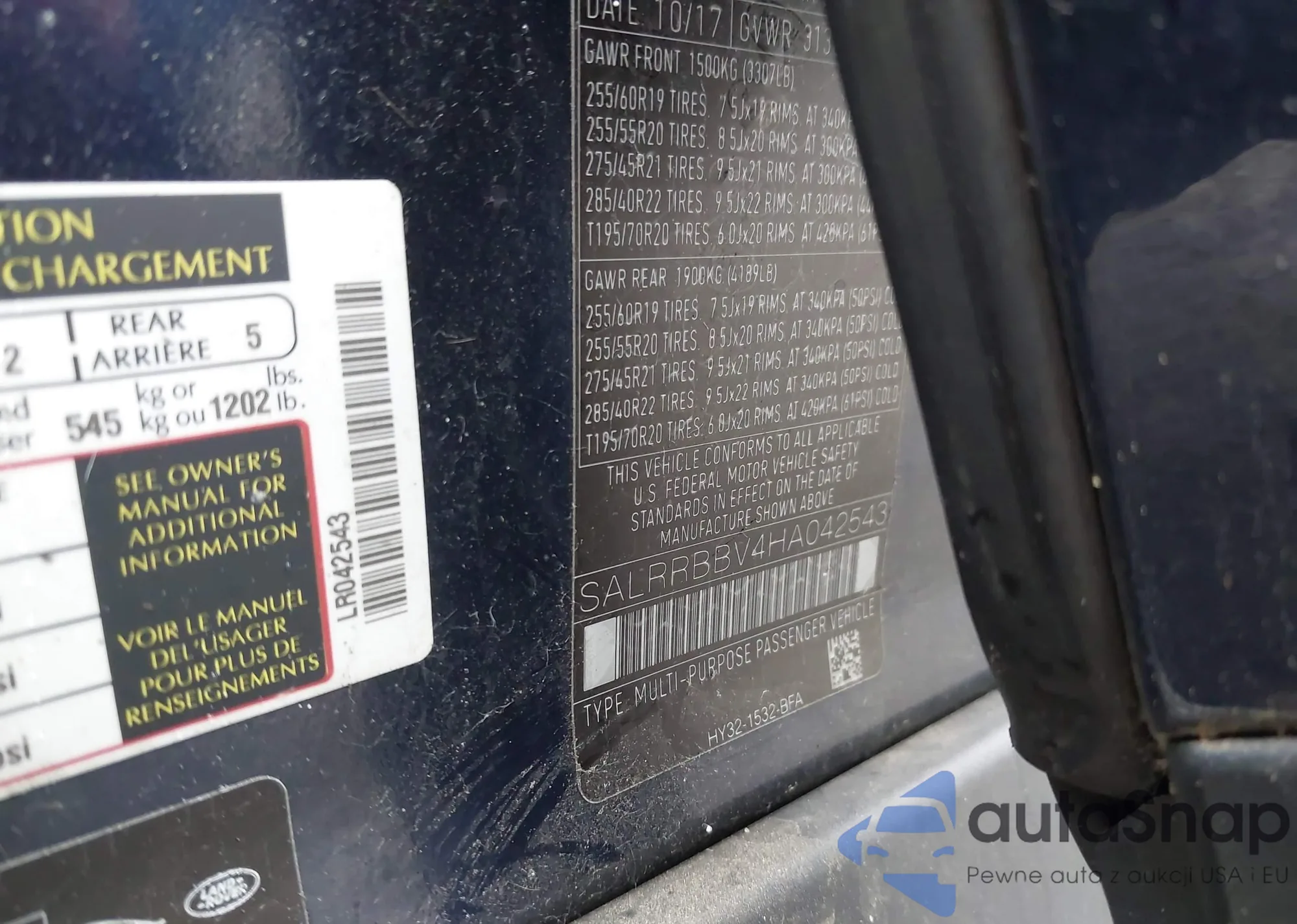 • VIN SALRRBBV4HA042543