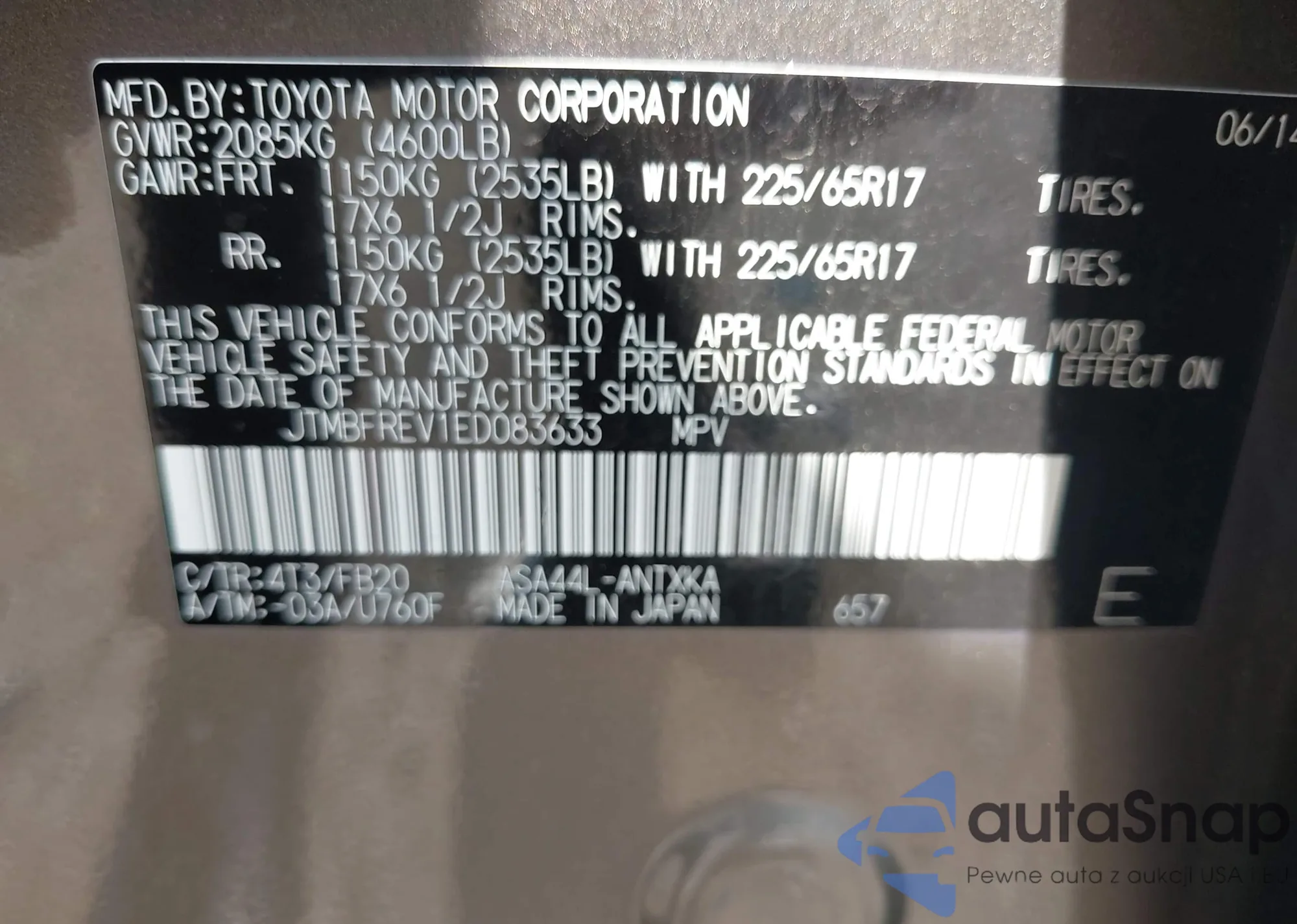 • VIN JTMBFREV1ED083633
