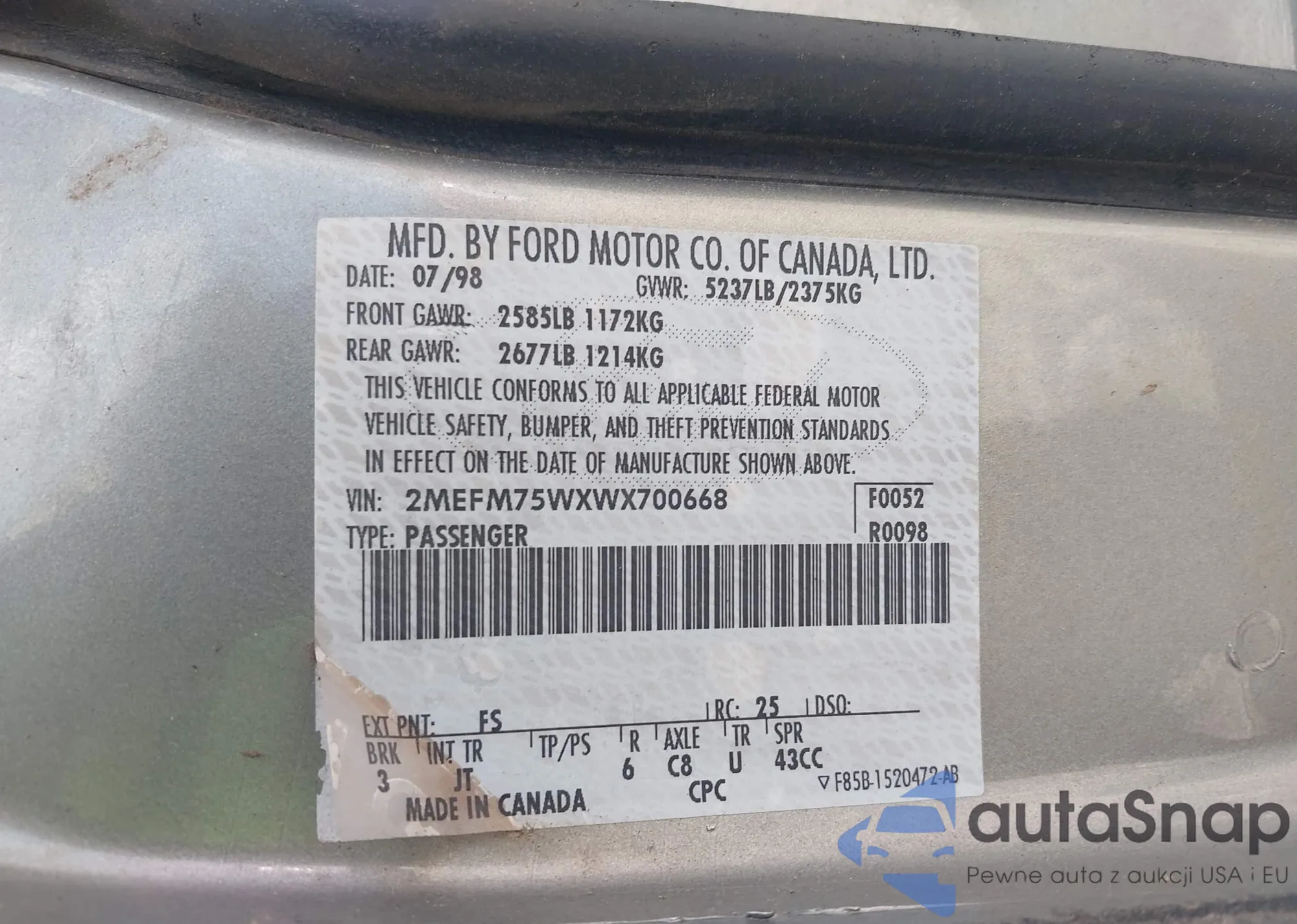 • VIN 2MEFM75WXWX700668