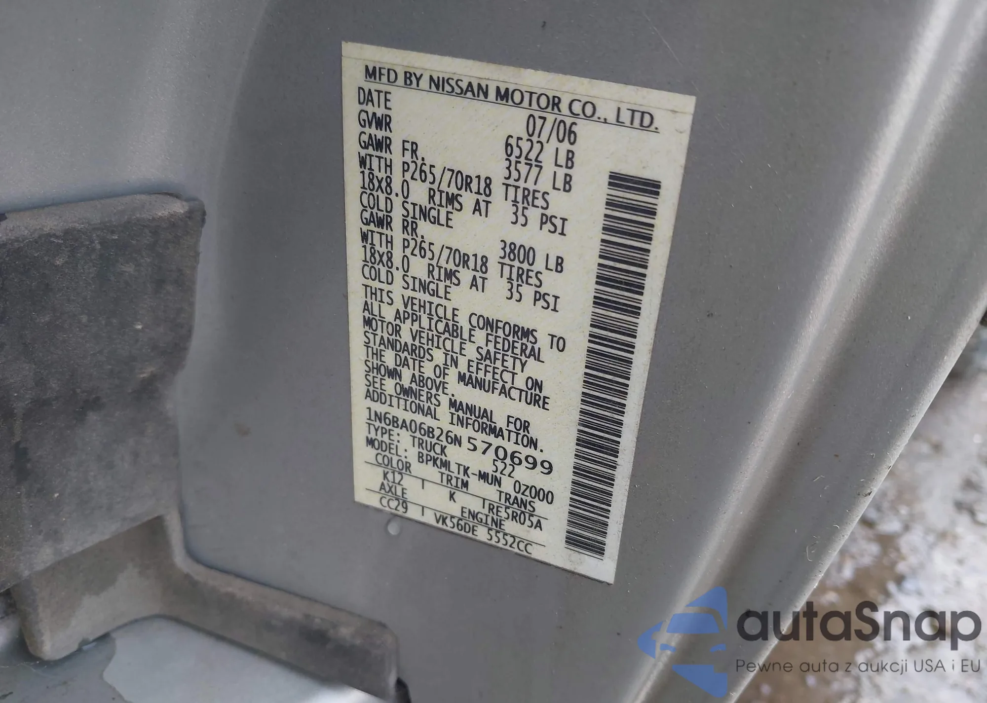 • VIN 1N6BA06B26N570699