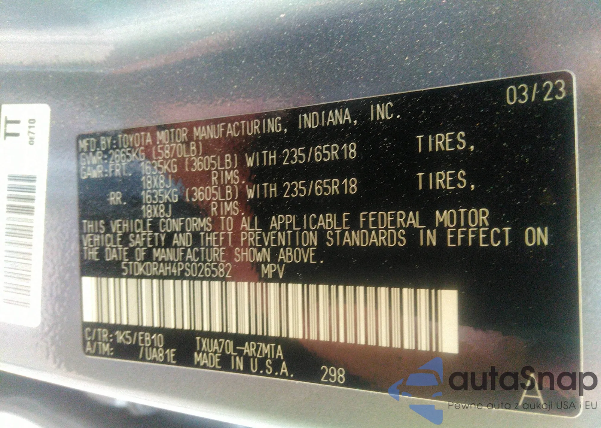 LOT: 42694148 VIN: 5TDKDRAH4PS026582