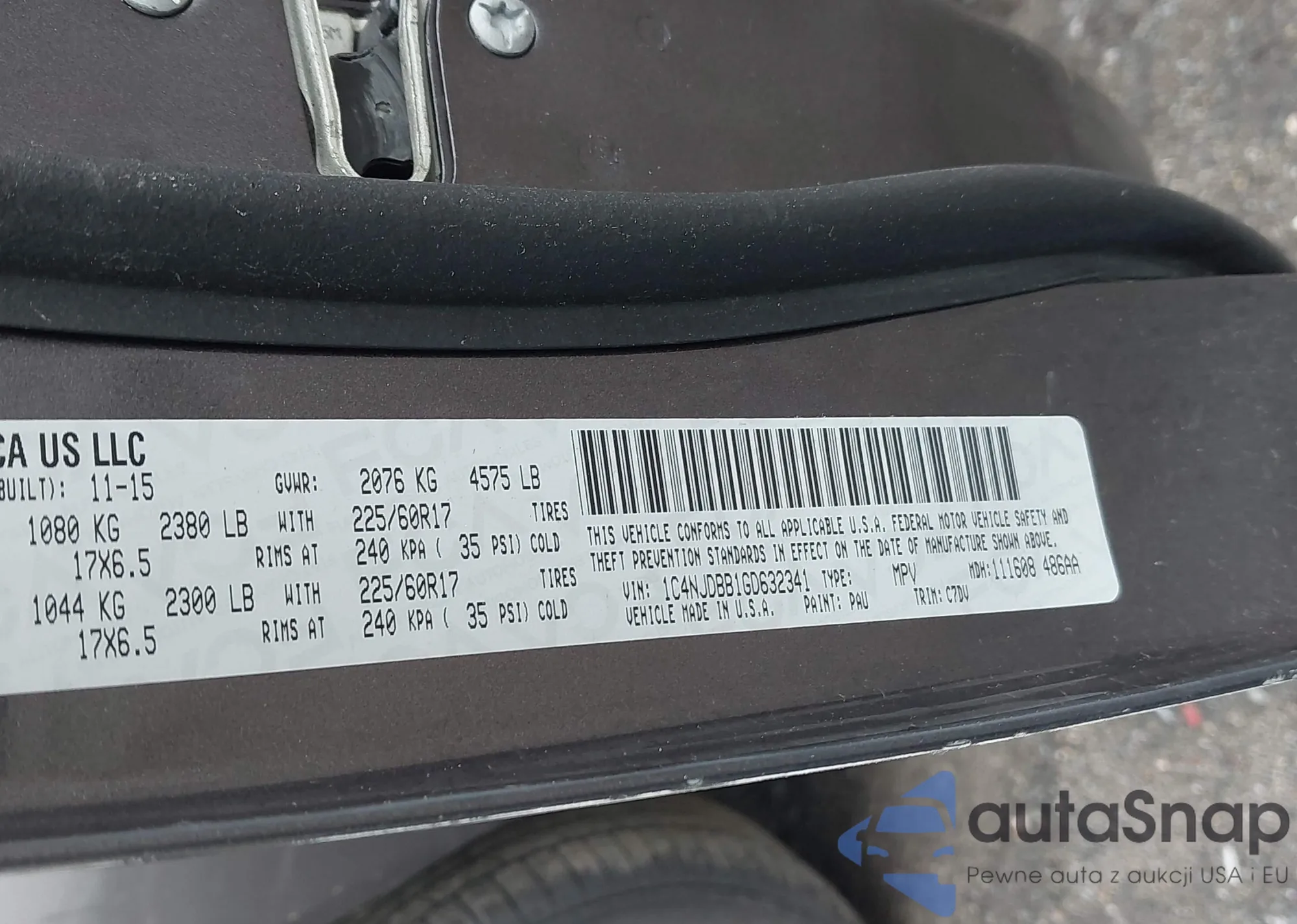 • VIN 1C4NJDBB1GD632341
