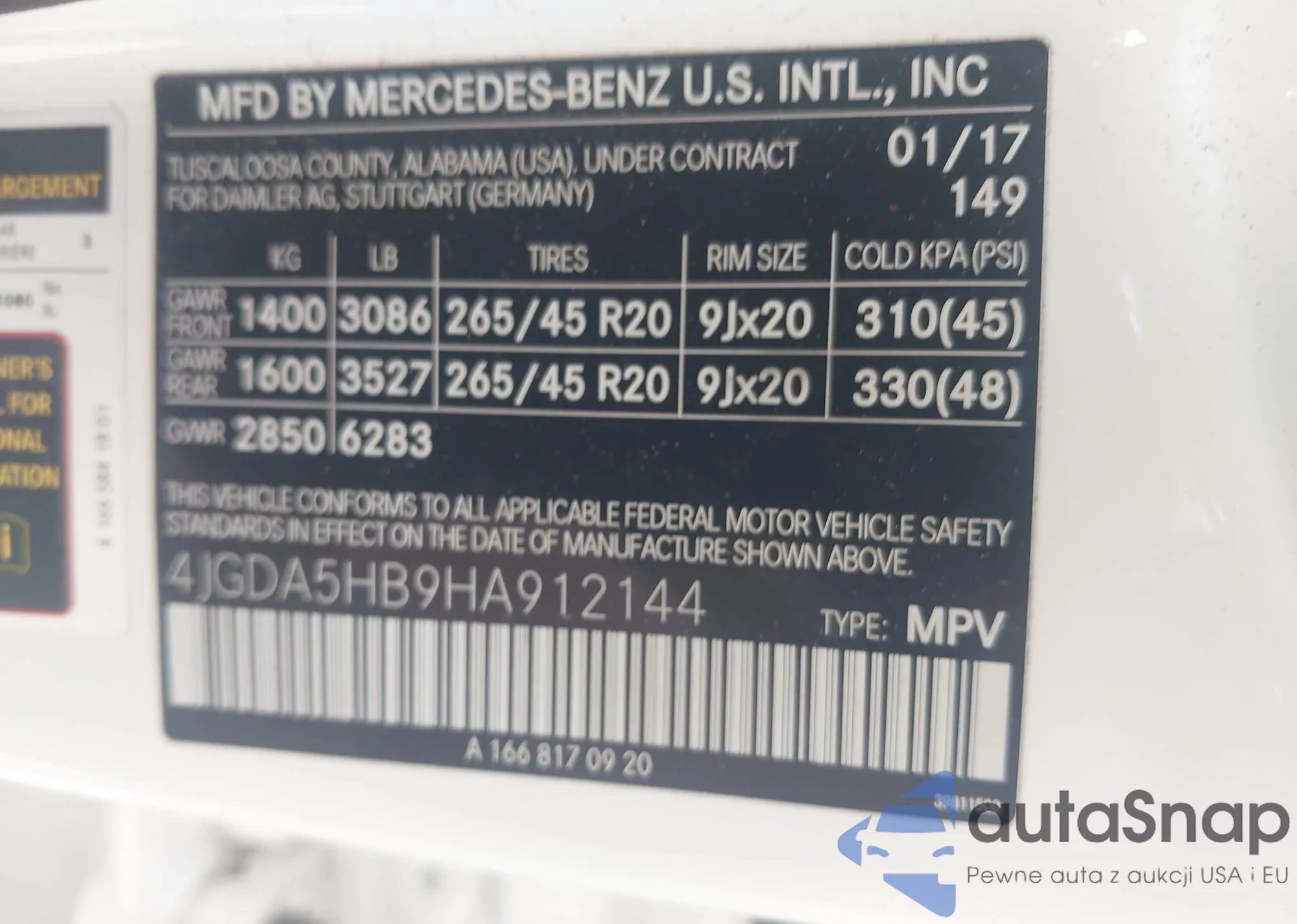 • VIN 4JGDA5HB9HA912144