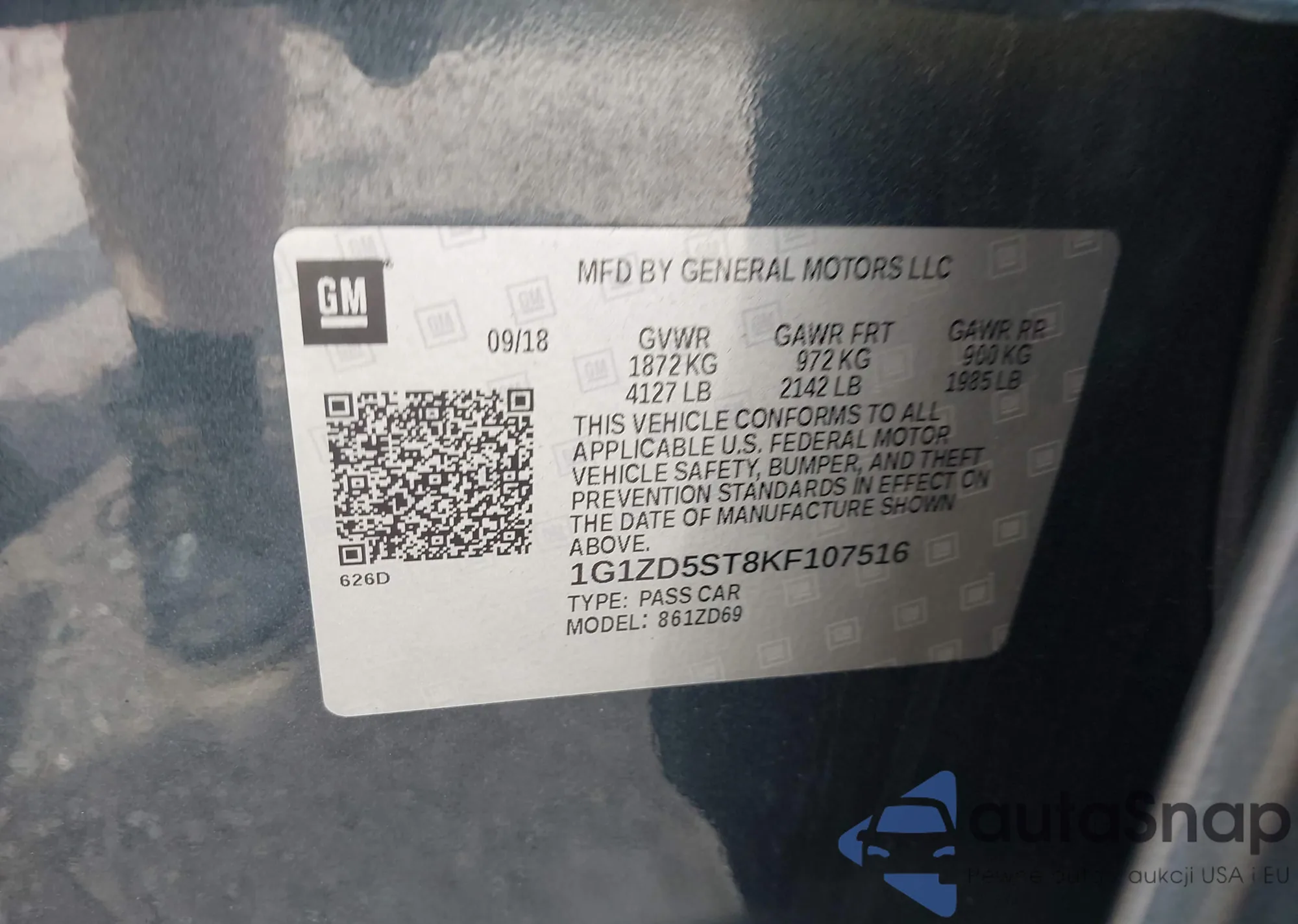 • VIN 1G1ZD5ST8KF107516