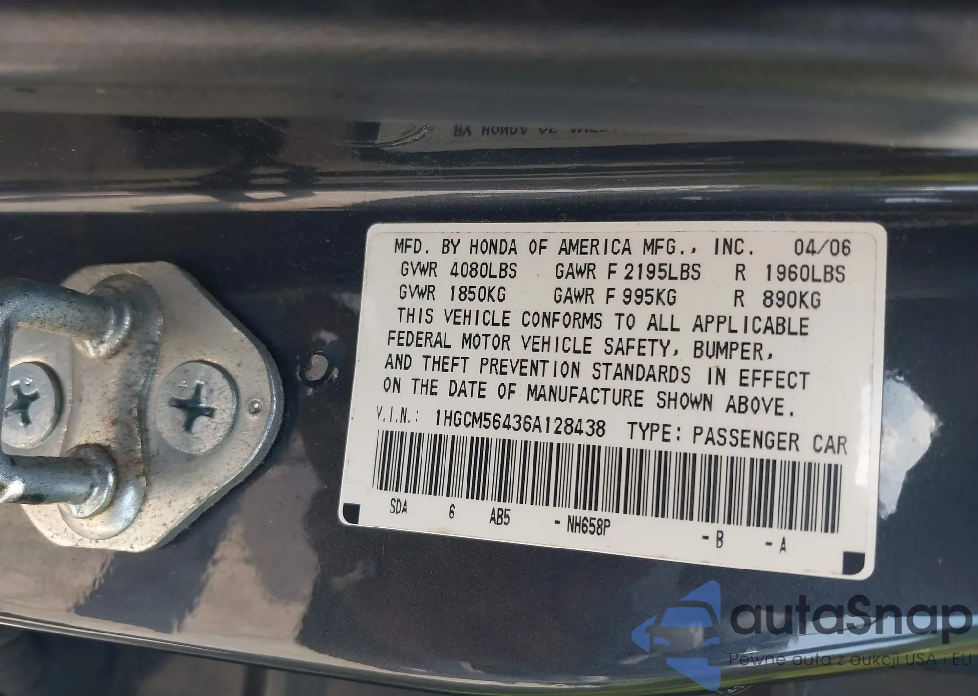 LOT: 42601615 VIN: 1HGCM56436A128438