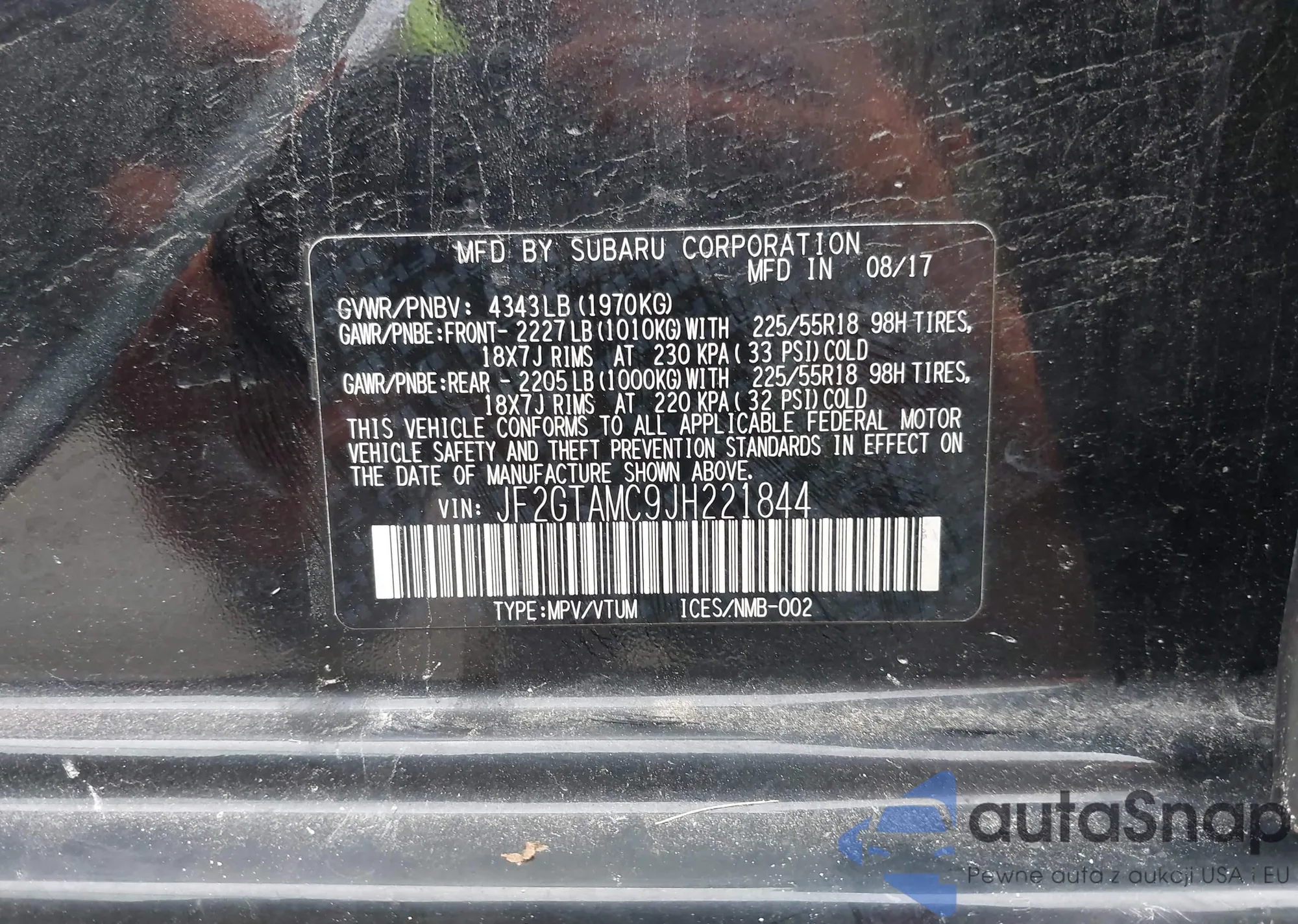 LOT: 42612271 VIN: JF2GTAMC9JH221844