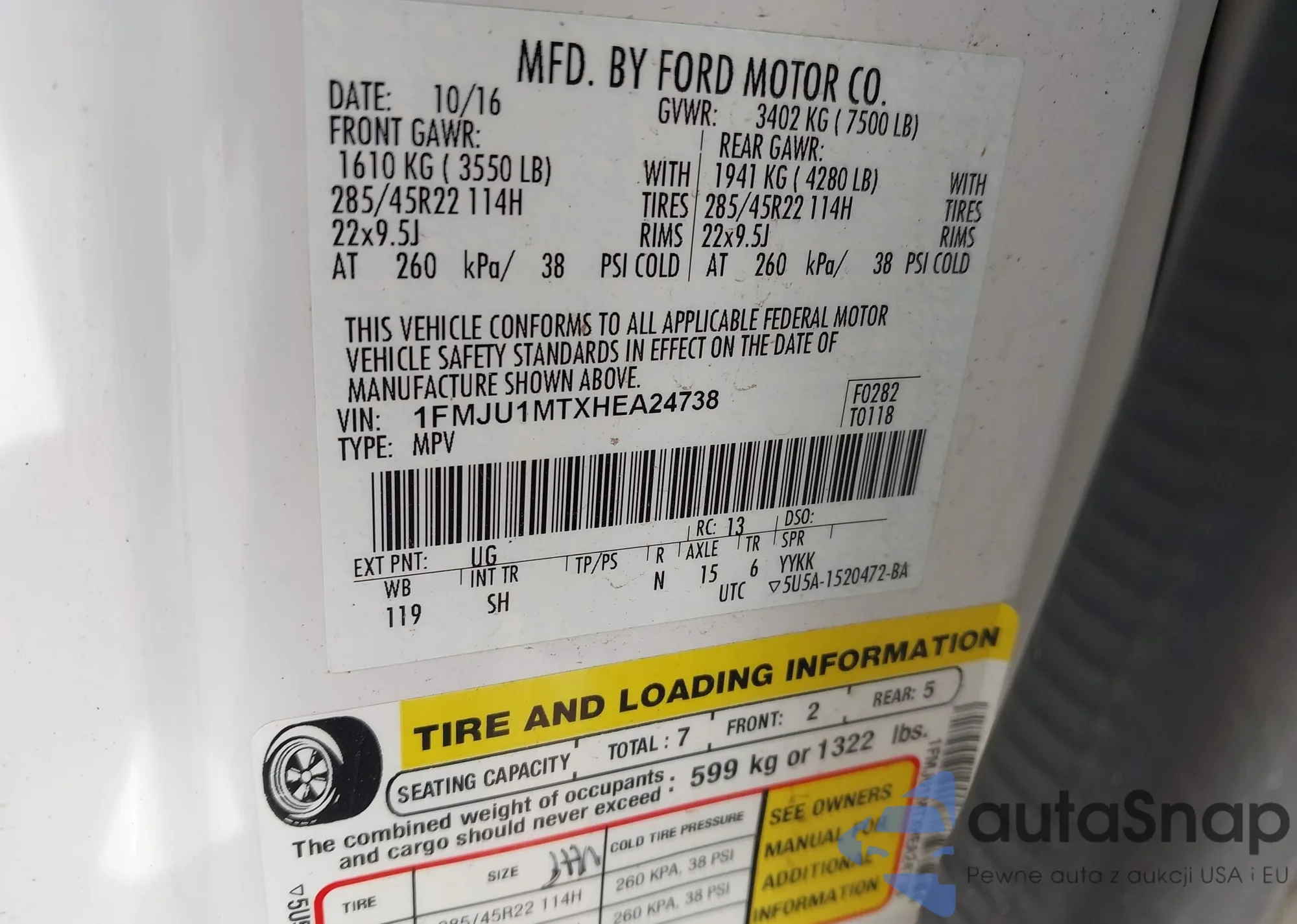 LOT: 42107025 VIN: 1FMJU1MTXHEA24738