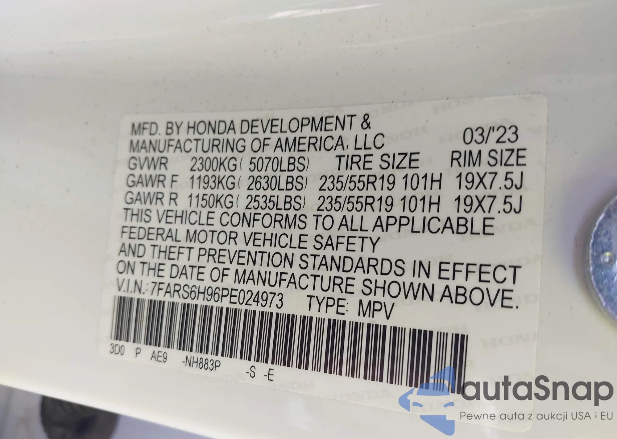 LOT: 42565272 VIN: 7FARS6H96PE024973