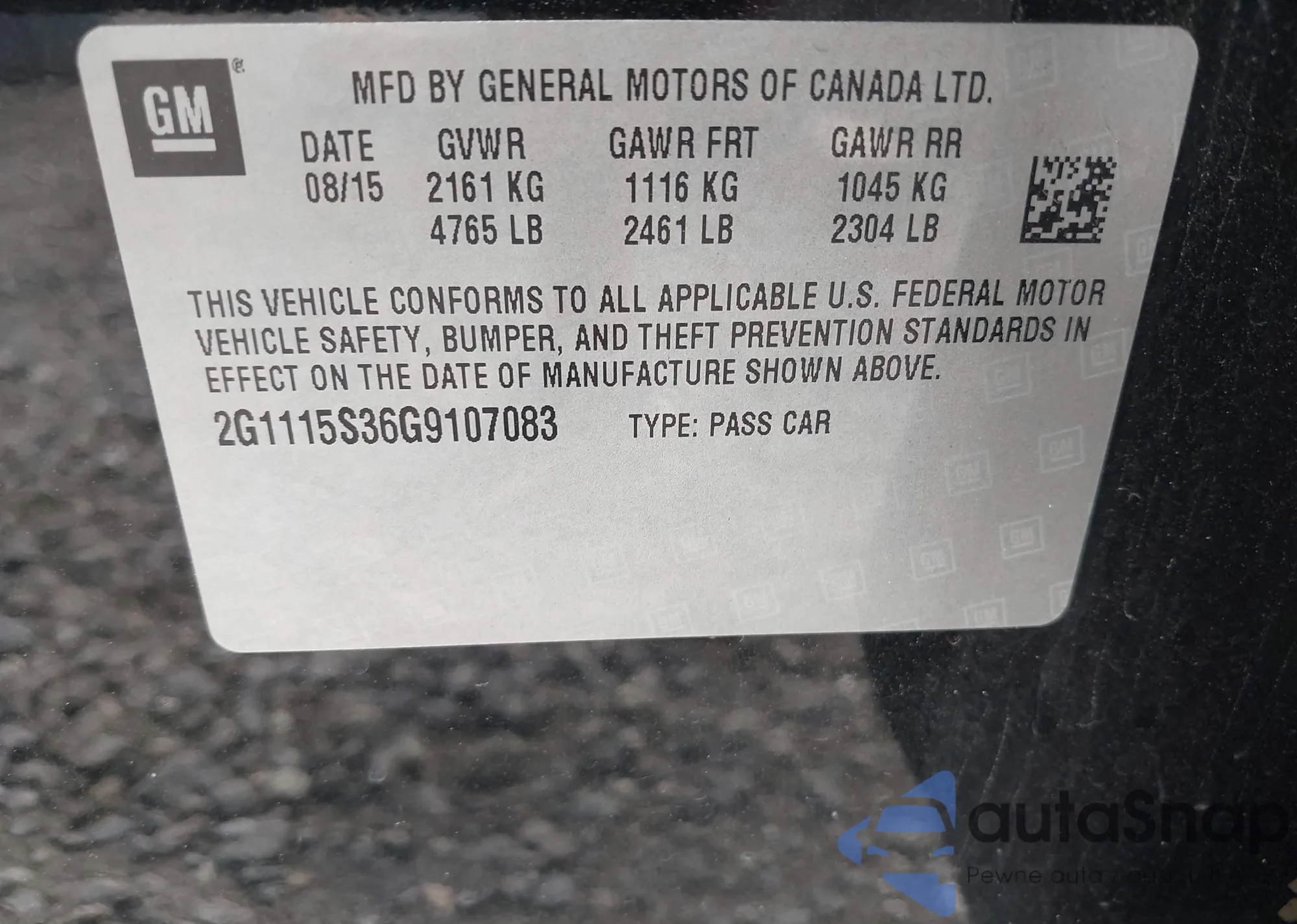 • VIN 1G6DS1E39C0149454