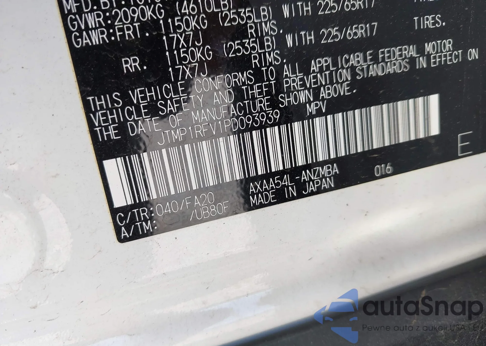 LOT: 41981807 VIN: JTMP1RFV1PD093939