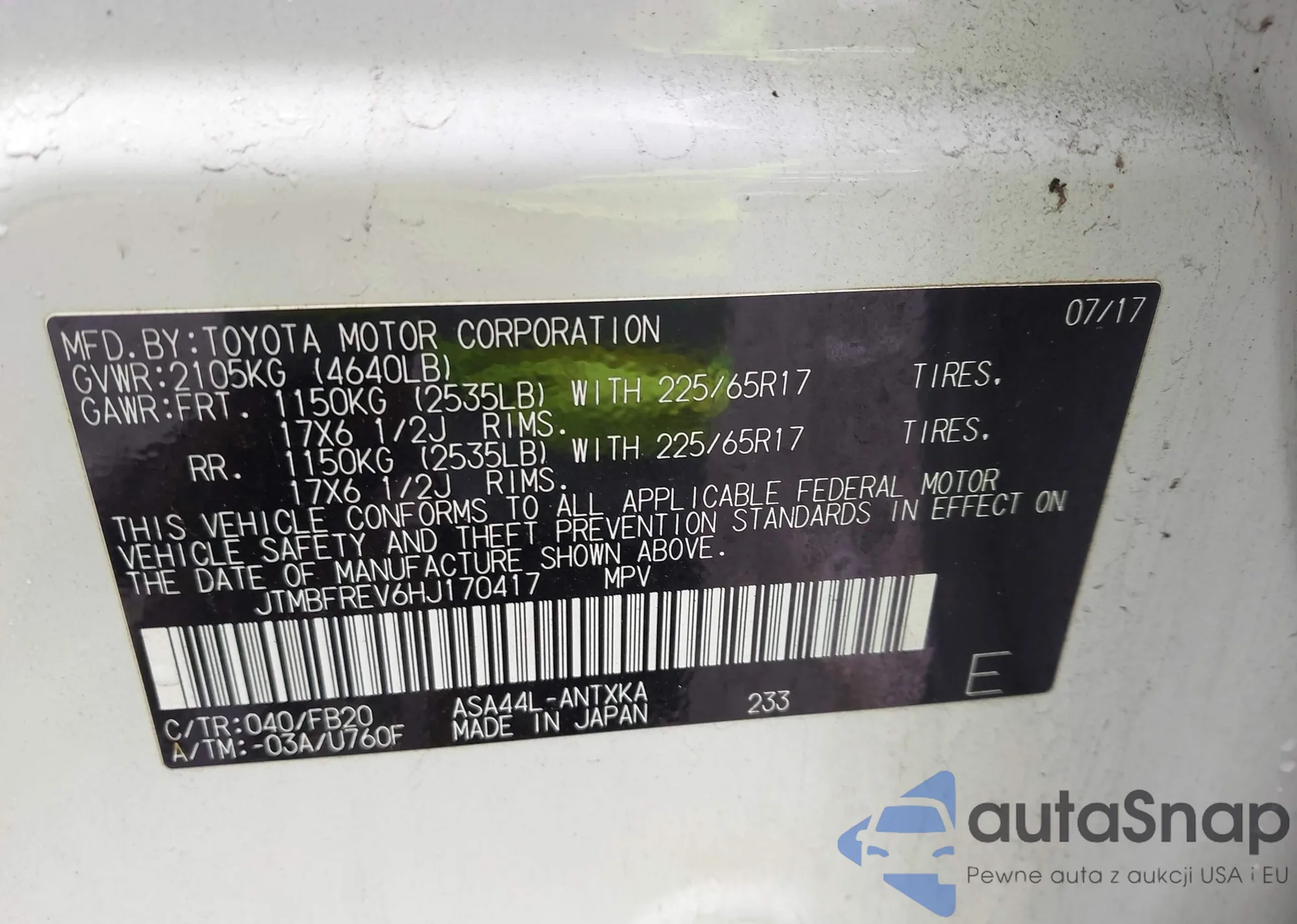 • VIN JTMBFREV6HJ170417
