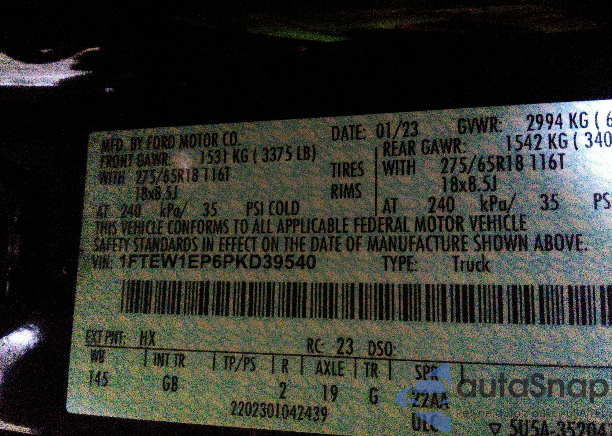 LOT: 41990504 VIN: 1FTEW1EP6PKD39540