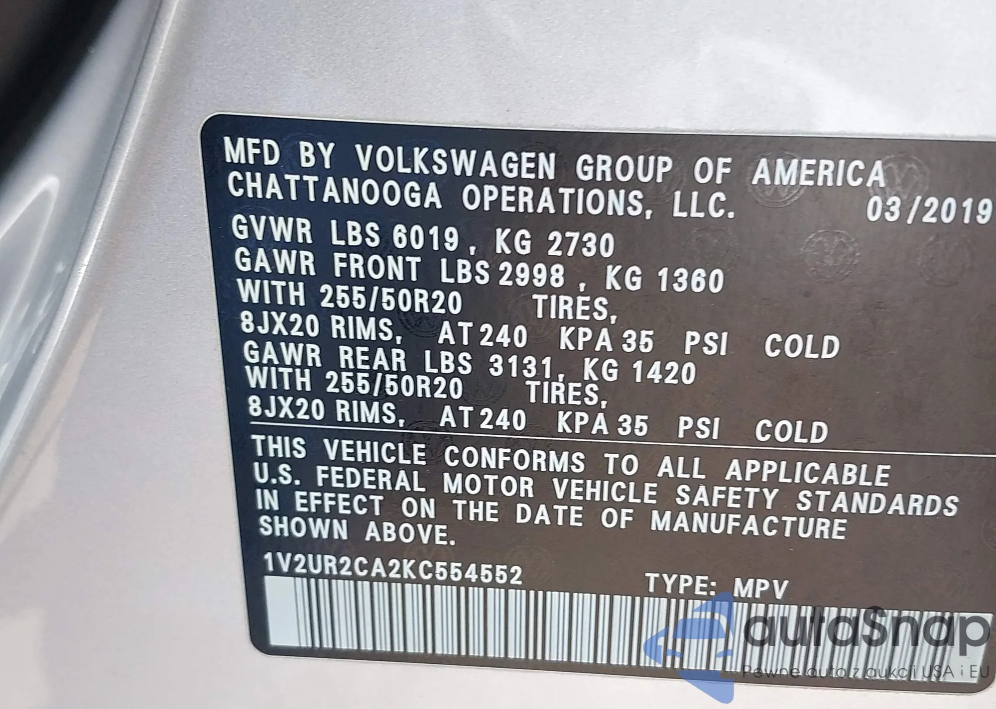 • VIN 55SWF8DB5KU307749