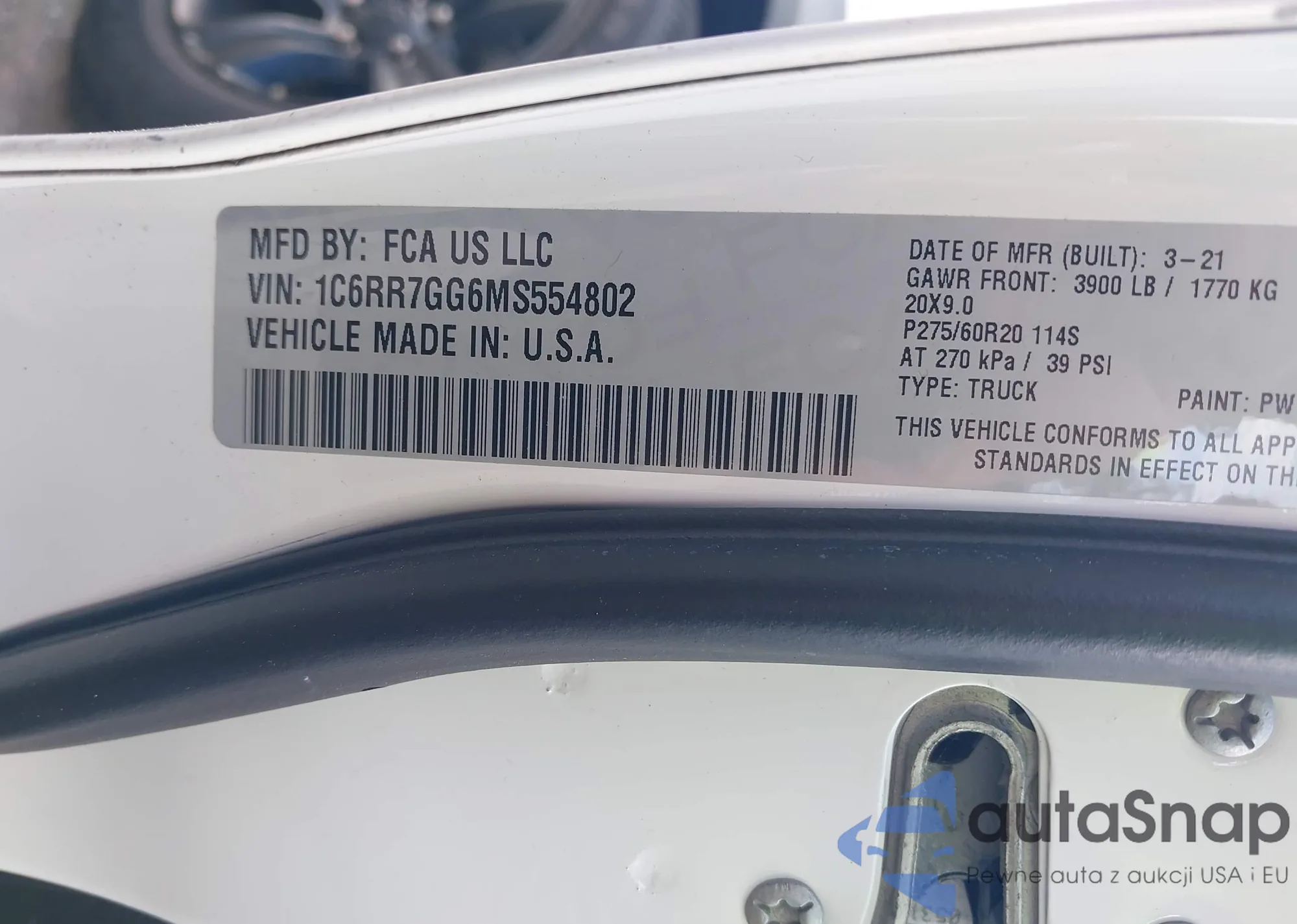 • VIN 1C6RR7GG6MS554802