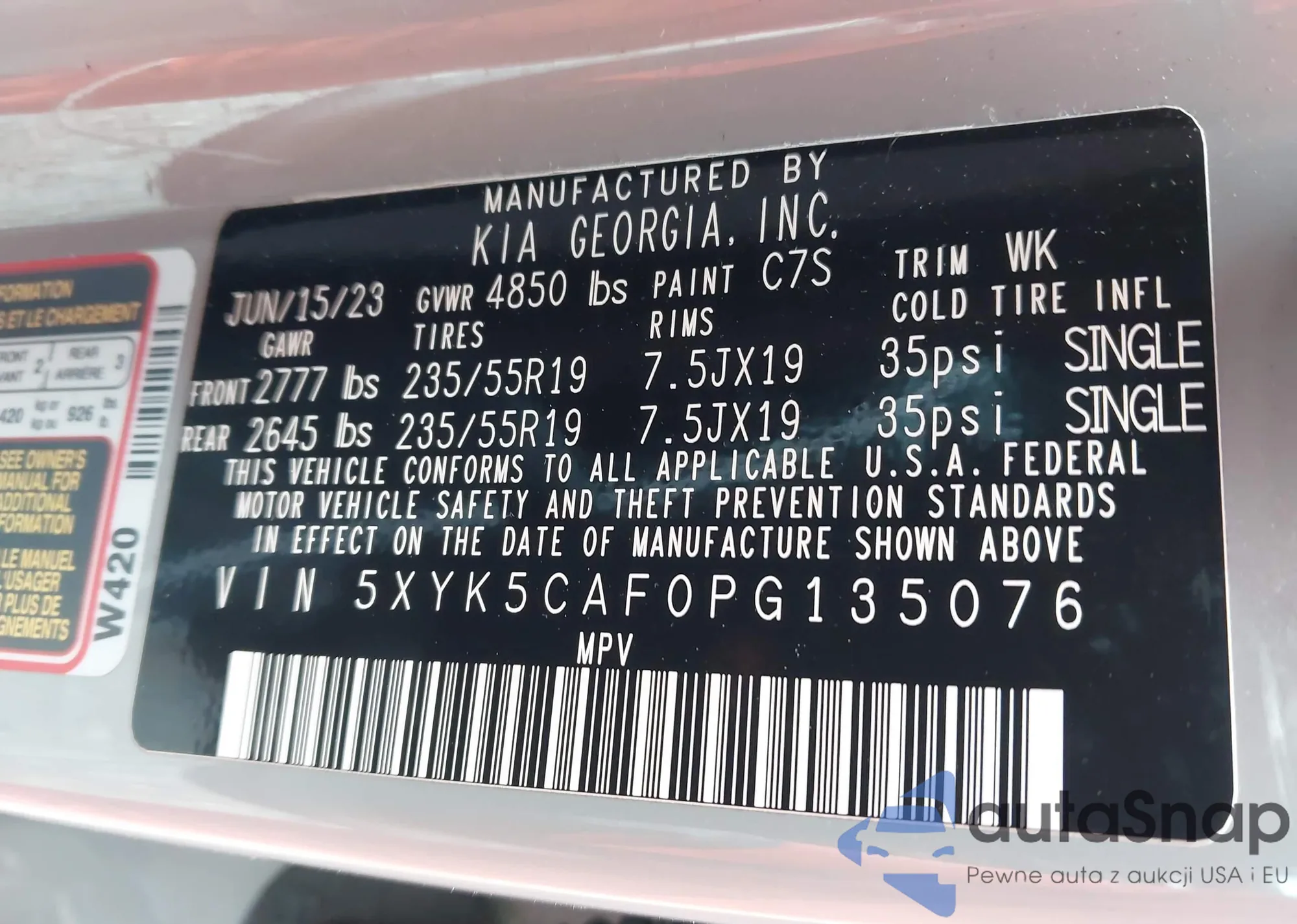 • VIN 5XYK5CAF0PG135076