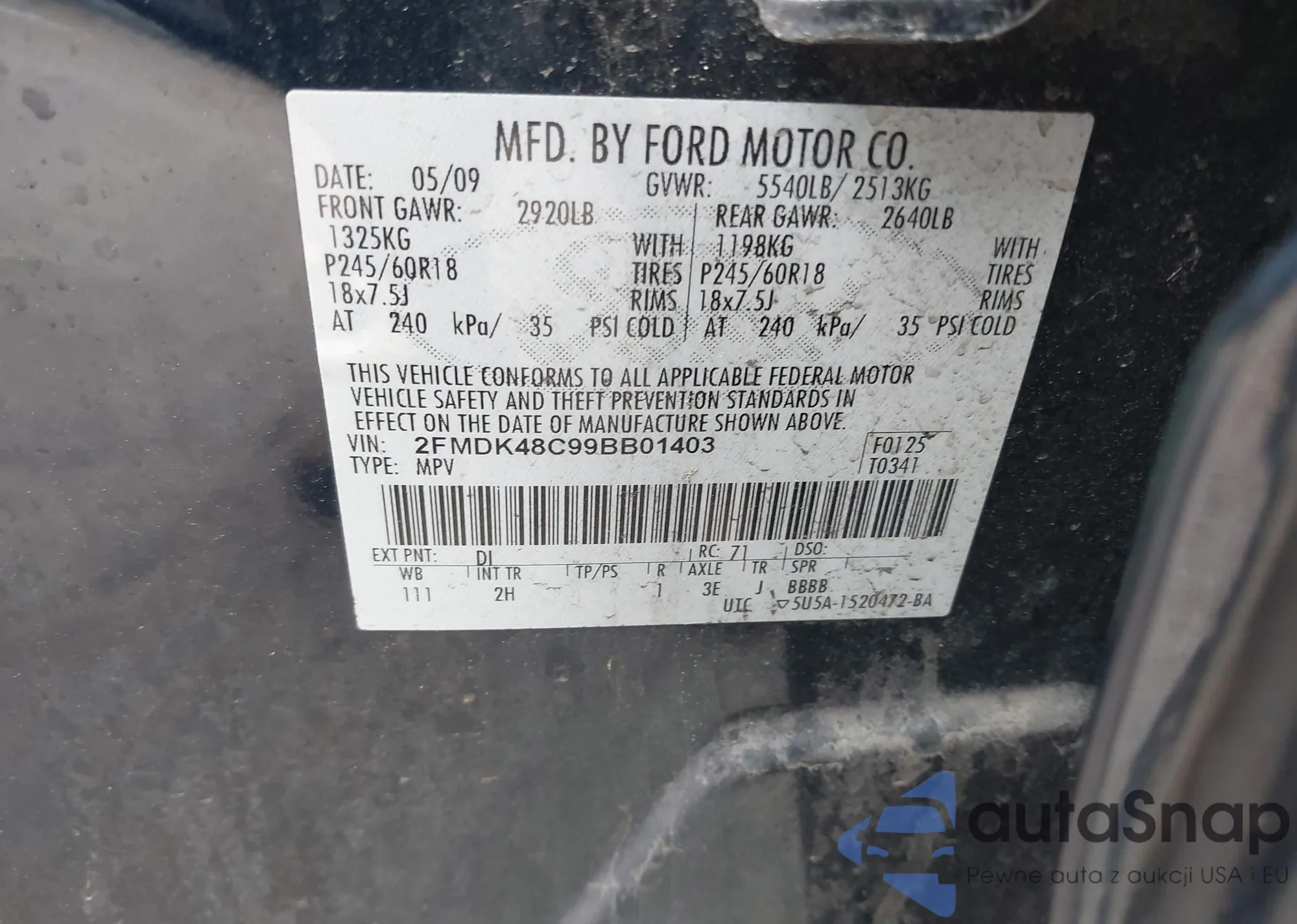 LOT: 41726754 VIN: KL4CJFSB0FB209158