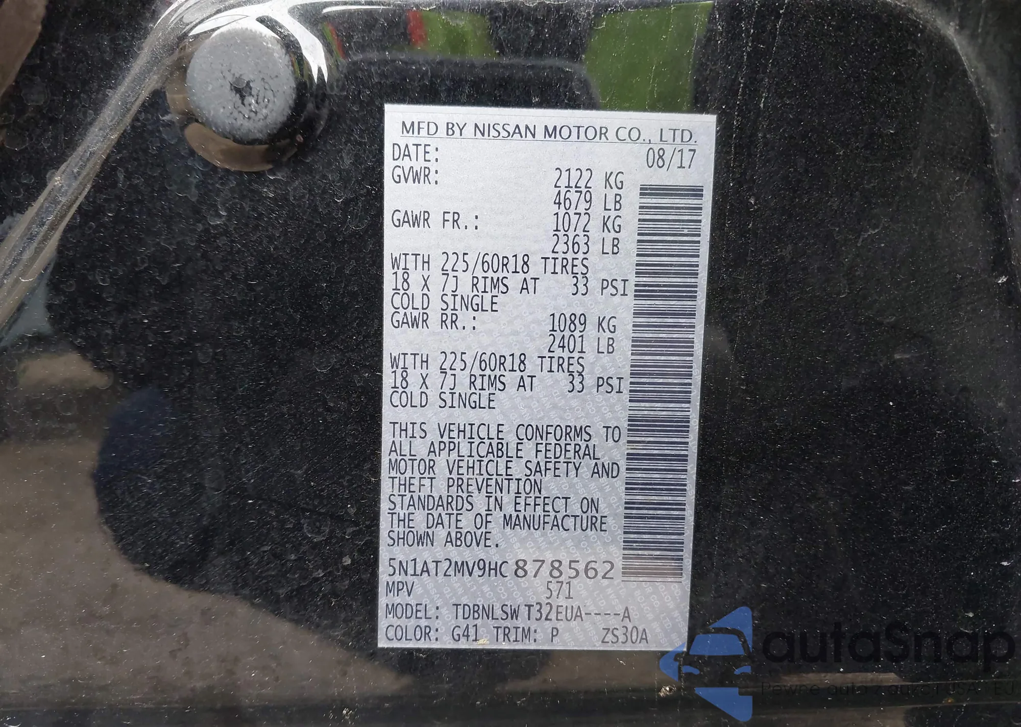 • VIN 5N1AT2MV9HC878562