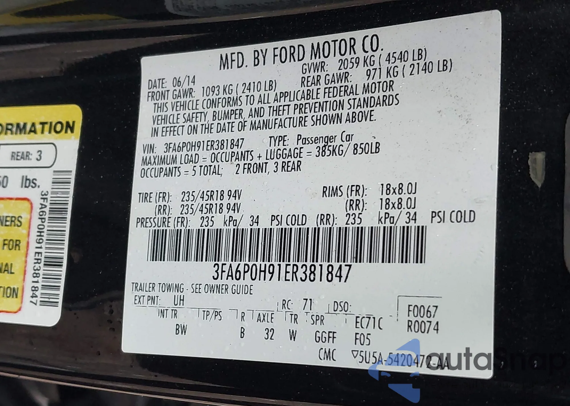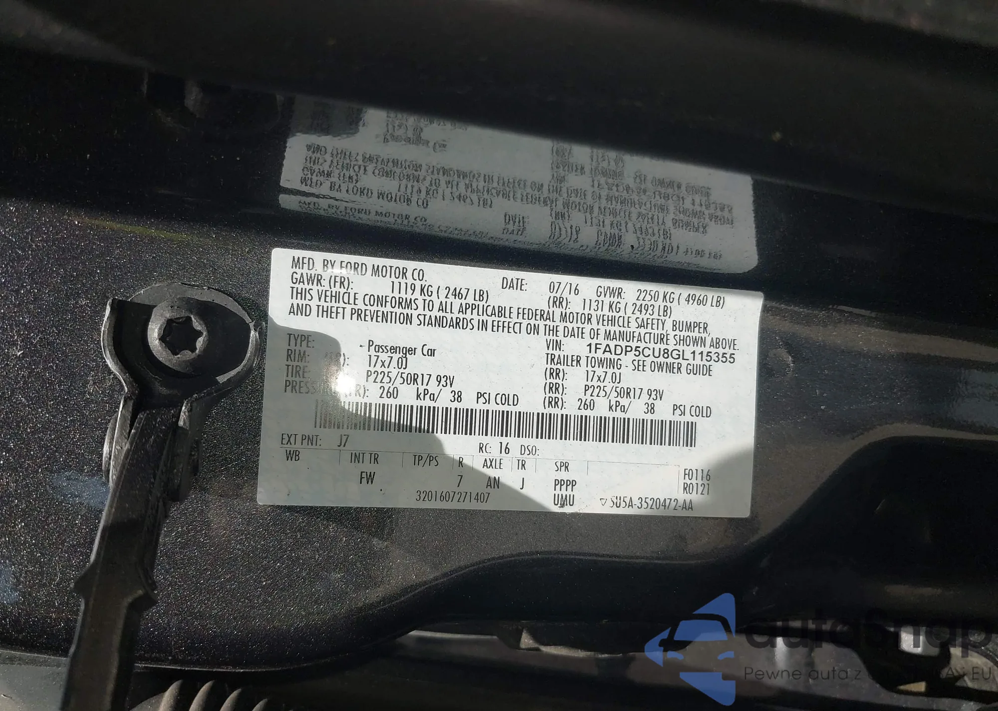 • VIN 1FADP5CU8GL115355