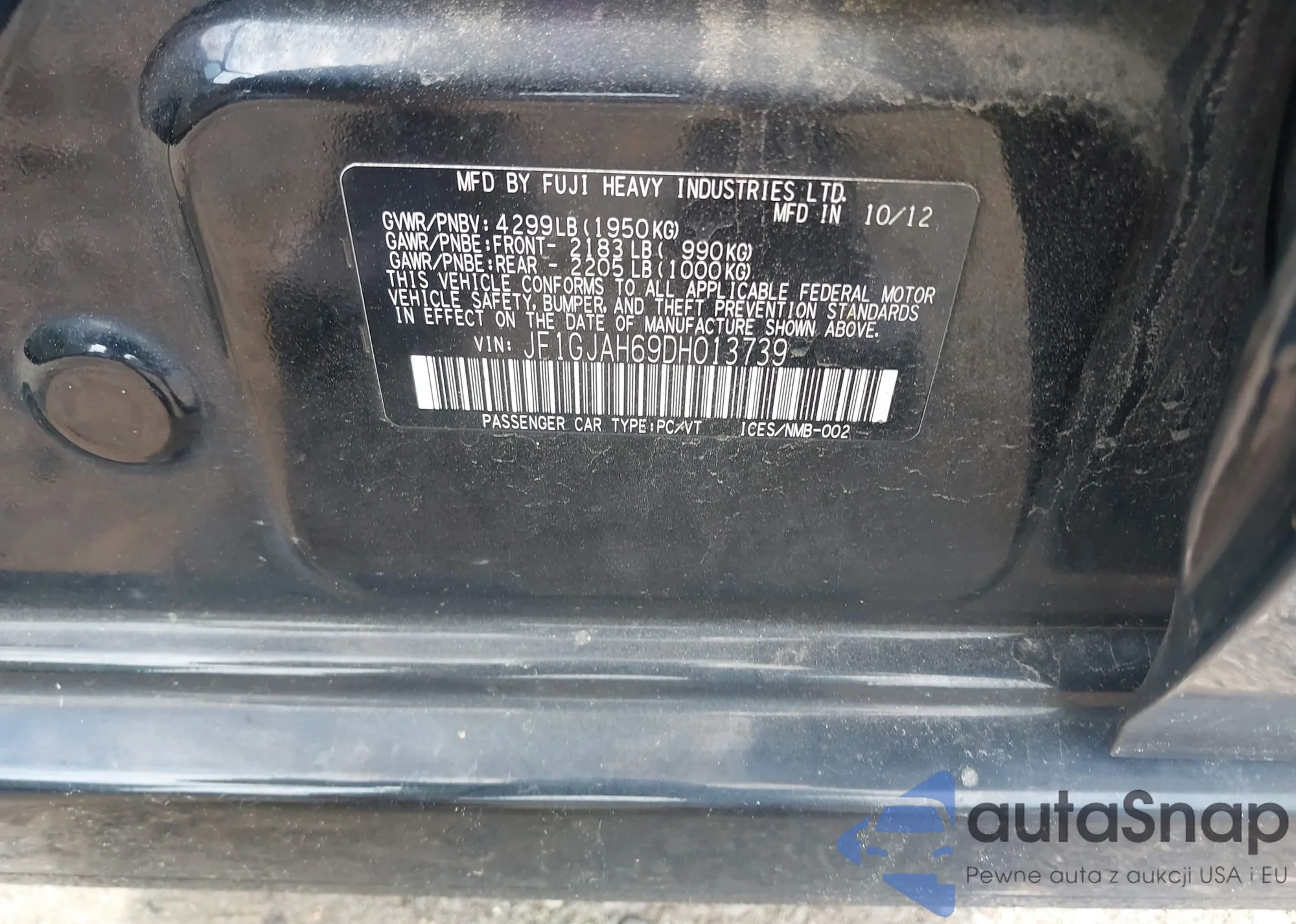 • VIN JF1GJAH69DH013739