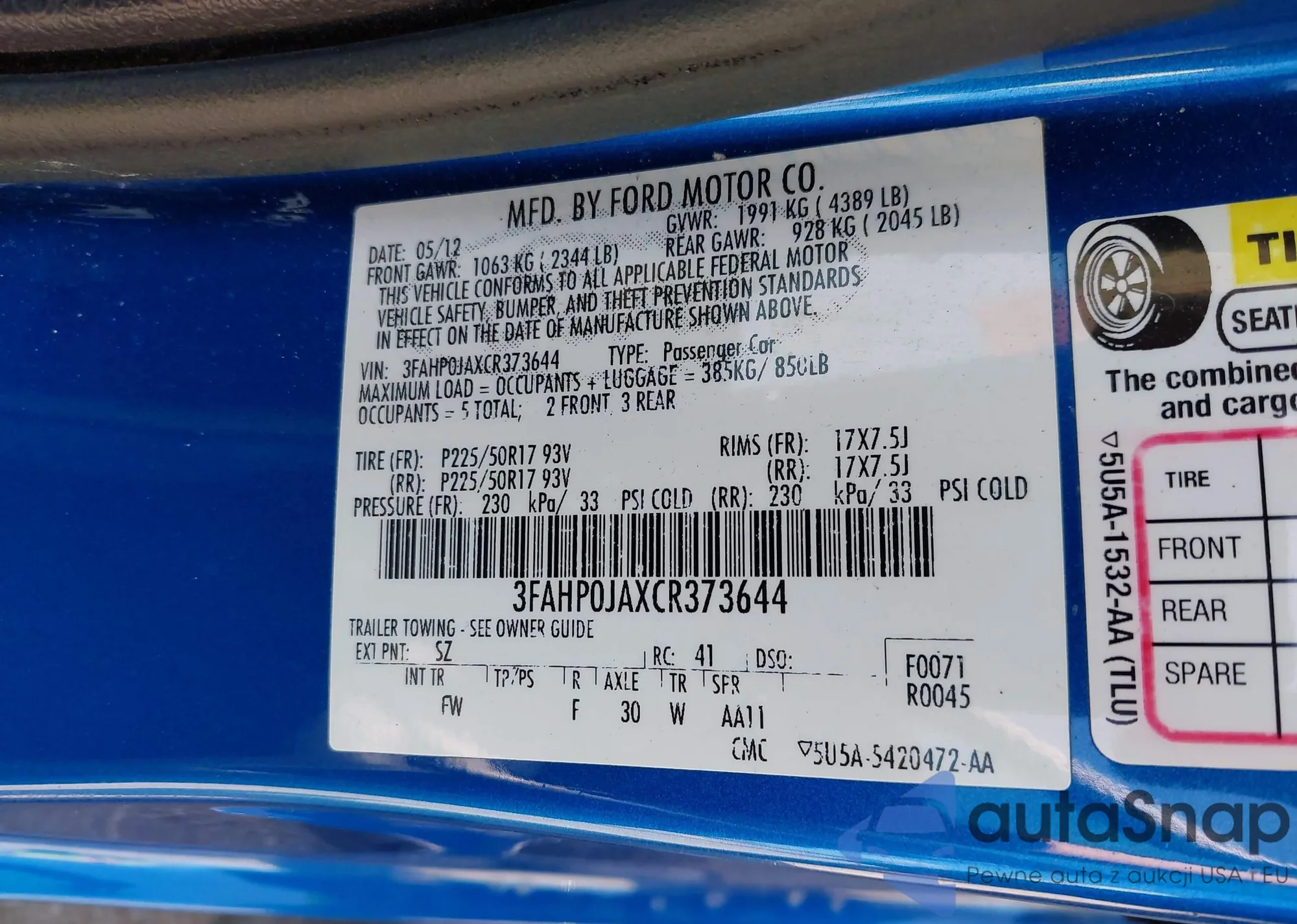 LOT: 42721311 VIN: 5Y2SP6E85AZ408142